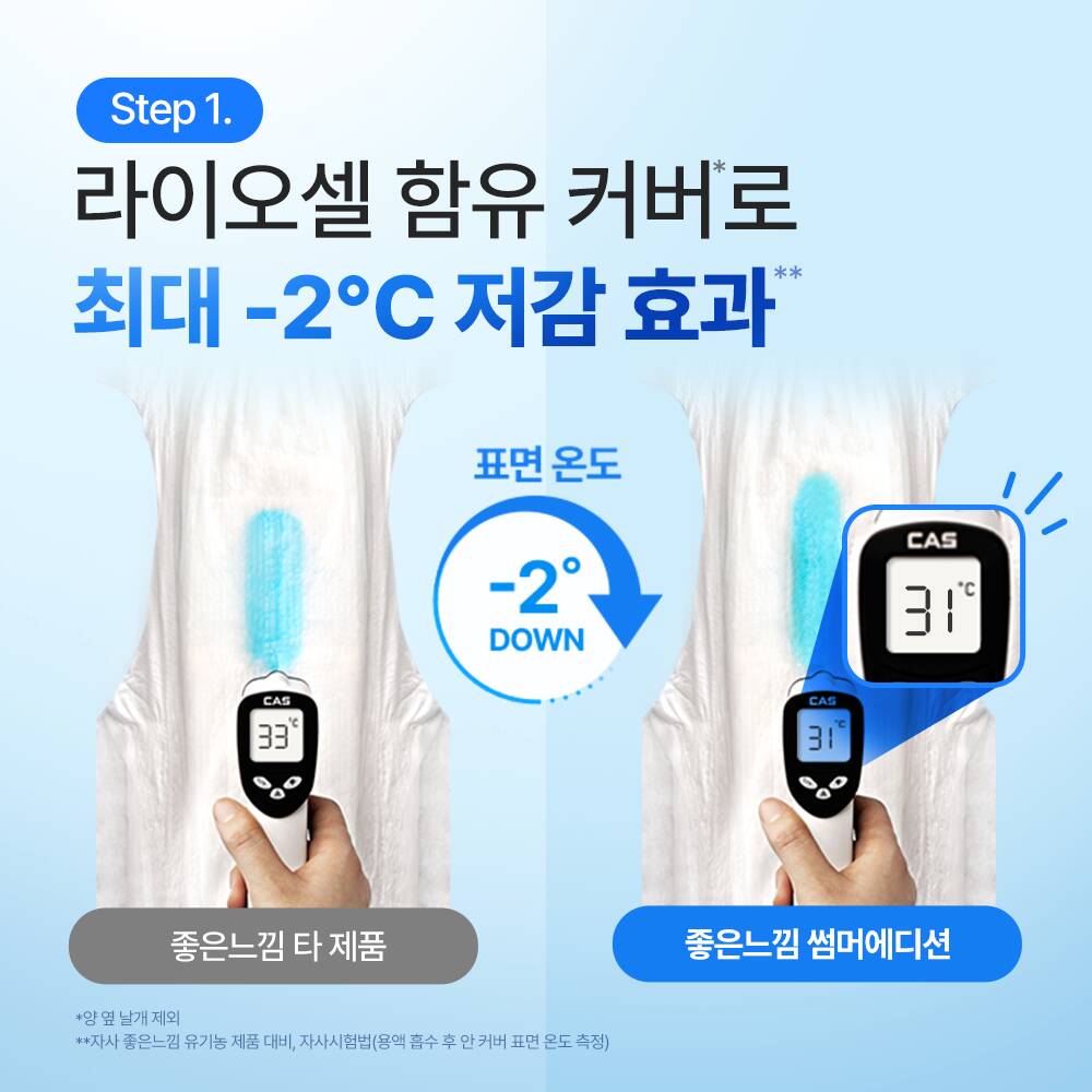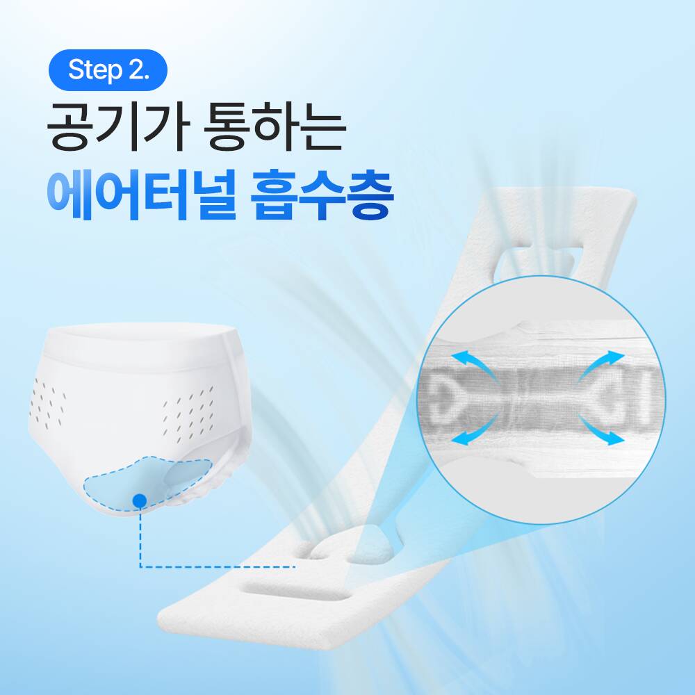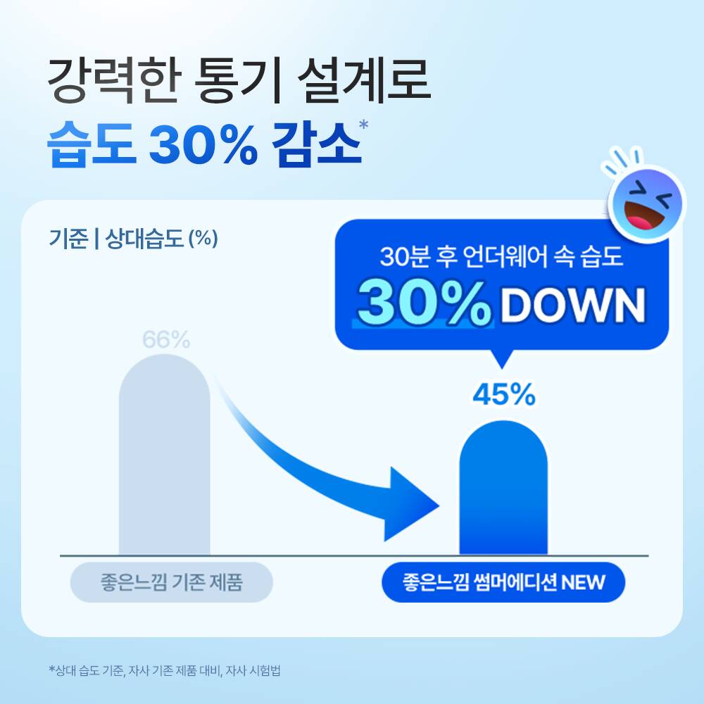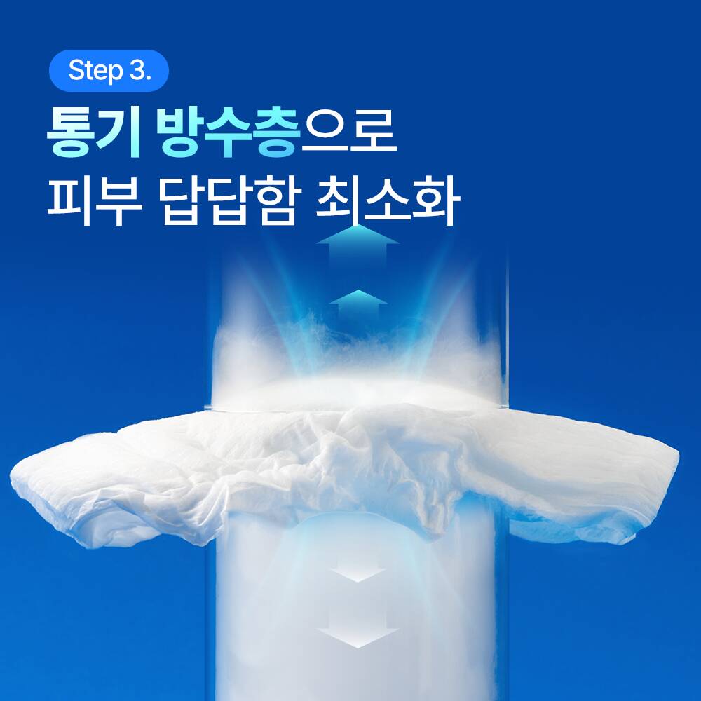 축축함 걱정 없도록 60% 빠른 흡수, 찝찝함 걱정 없도록 되묻어남 감소