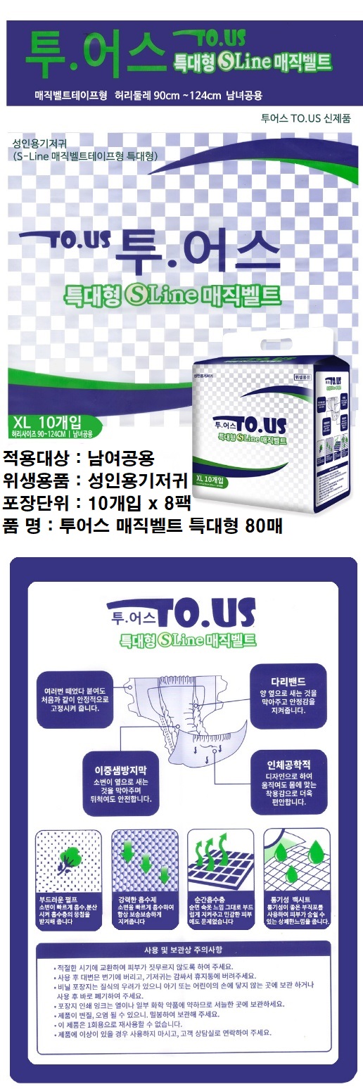 투어스기저귀 매직벨트 특대형80매/ 성인용기저귀 한박스