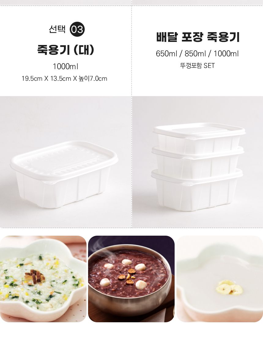 (01 죽용기(소) 50set)배달 사각 일회용 포장용기 죽통 650ml 50개/테이크아웃/1회용/매장/업소용/다용도