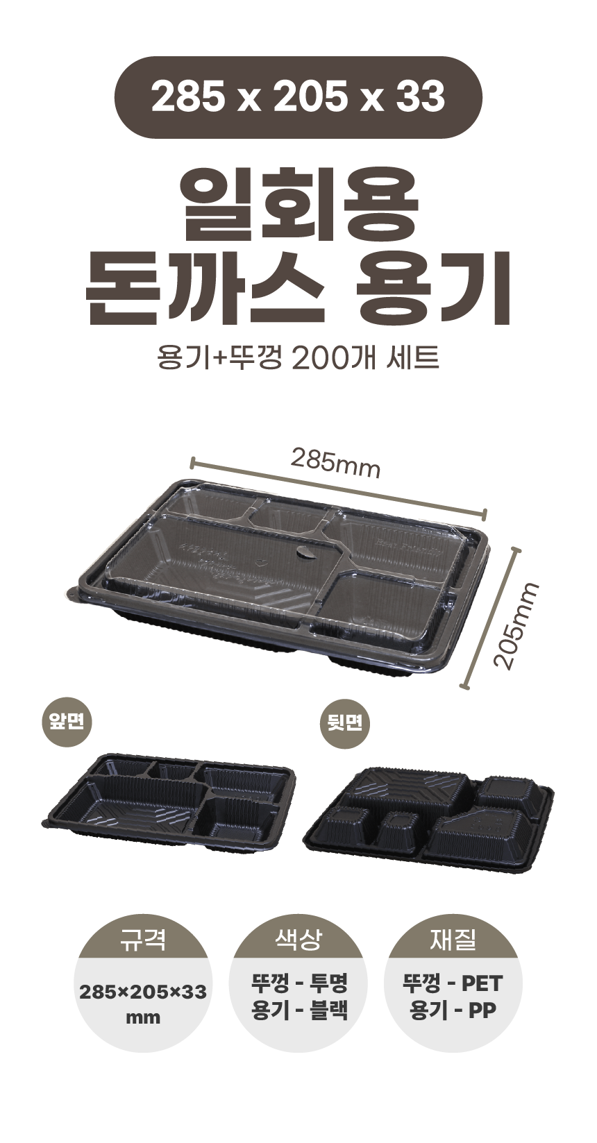 일회용 5칸 돈까스 용기 (몸통+뚜껑) 200개 세트 도시락 포장 배달 2시까지 주문시 당일발송