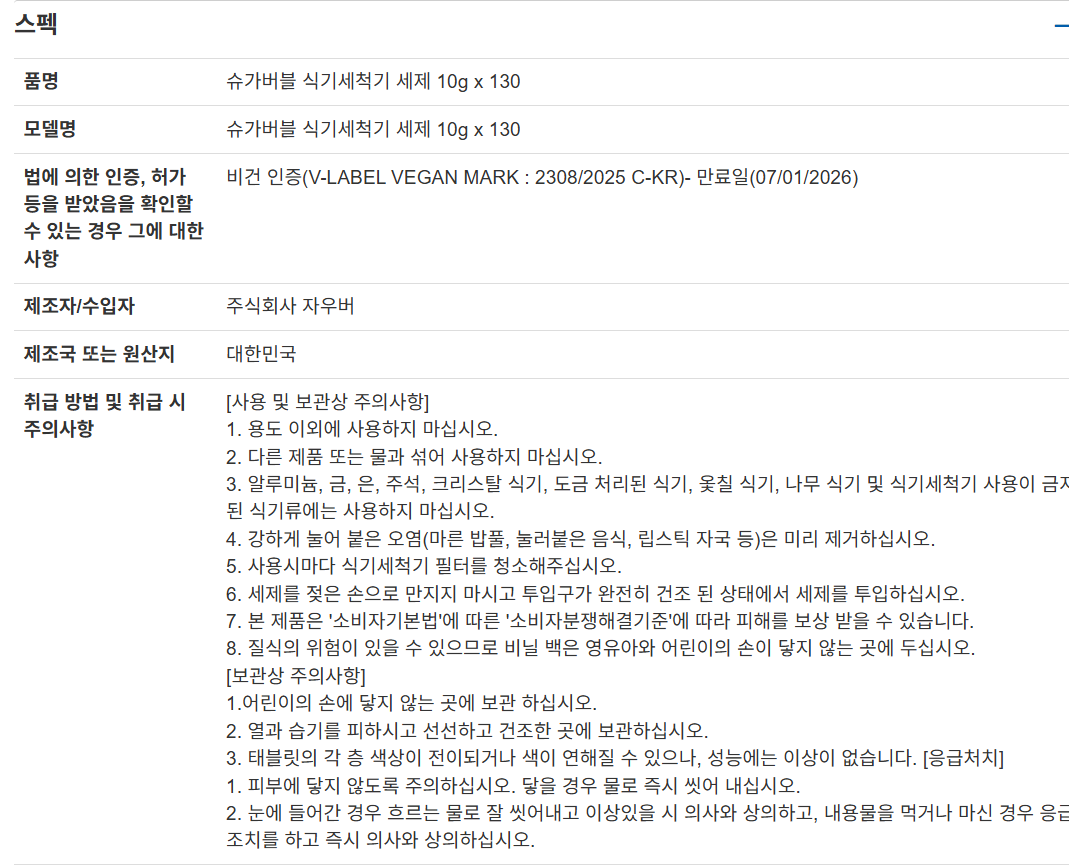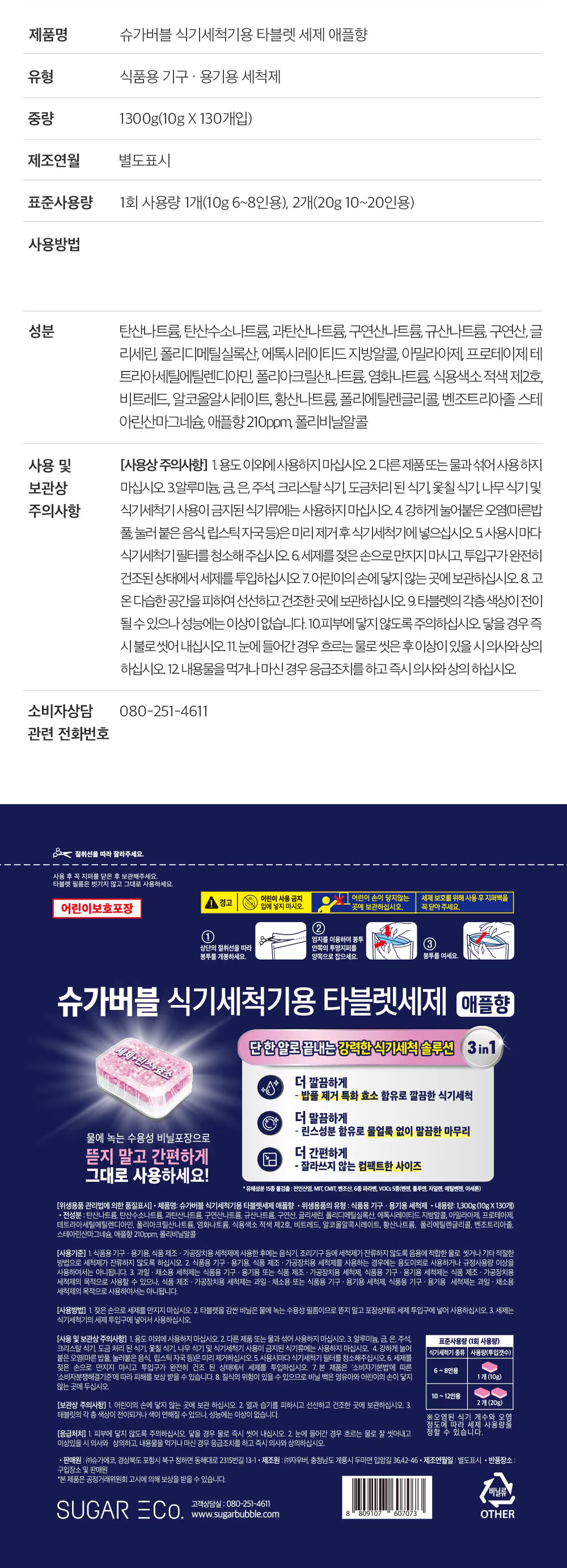 슈가버블 식기세척기 세제 10g x 130 코스트코