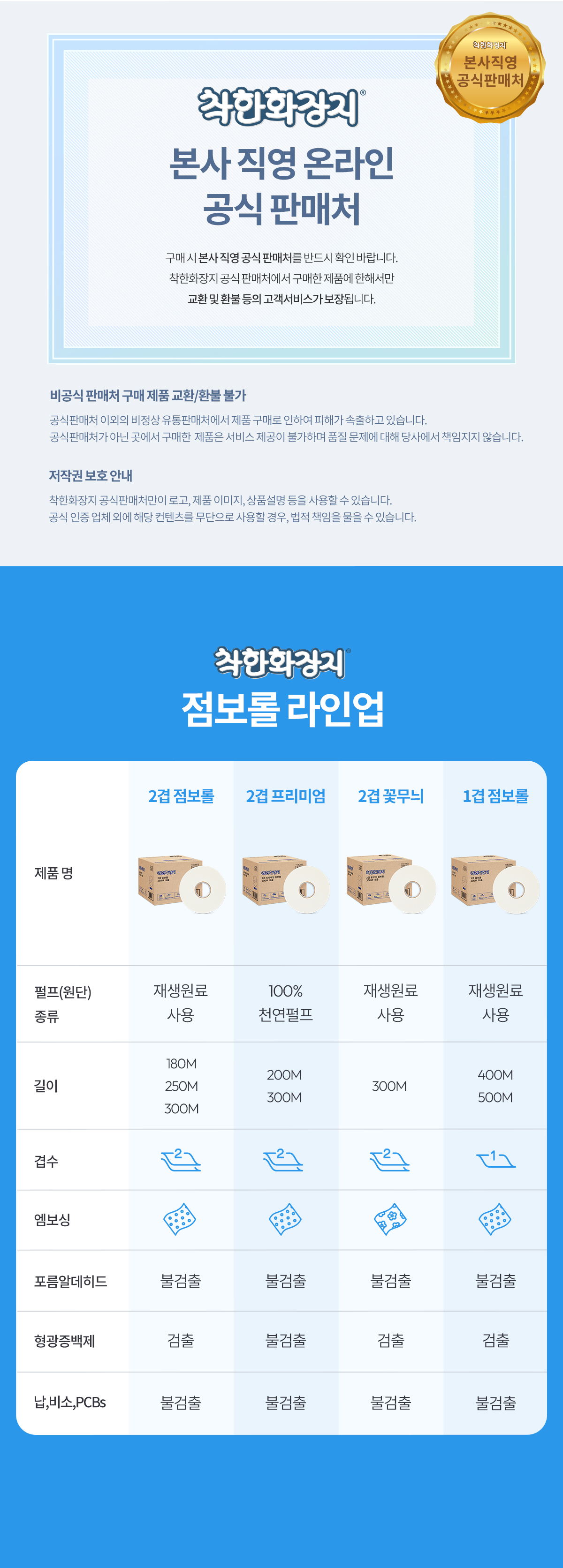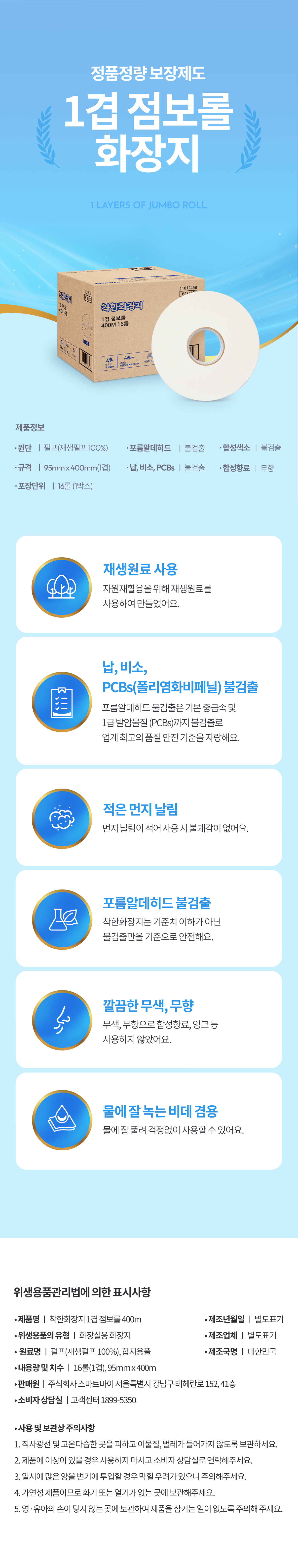 착한화장지 1겹 점보롤 400M 16롤 점보롤화장지