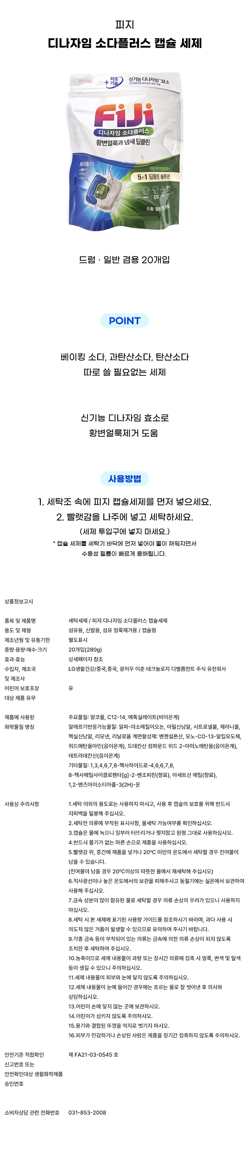 FIJI 엘지생활건강 피지 캡슐 세제 20개입 4개 디나자임 소다플러스