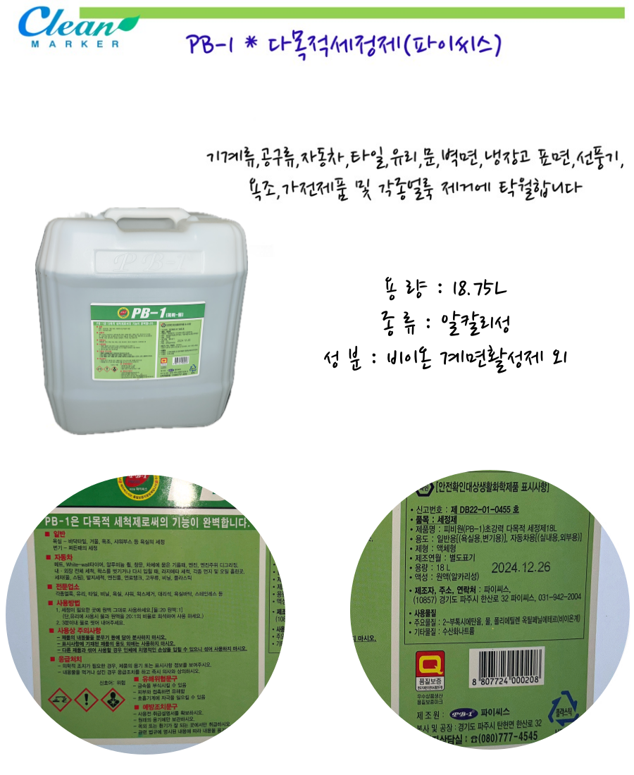 피비원 PB-1 다목적세정제 18.75L 다용도세제 다용도세정제 찌든때제거제 기름때제거 다목적세제
