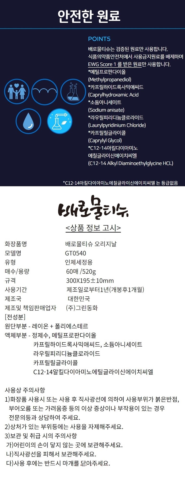 그린동화 배로 물티슈 캡형 엠보싱 60매x20팩 520g