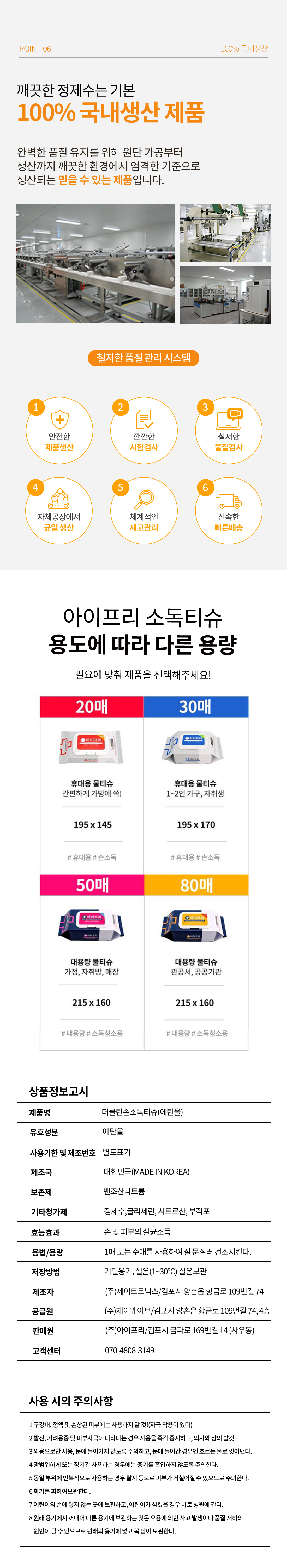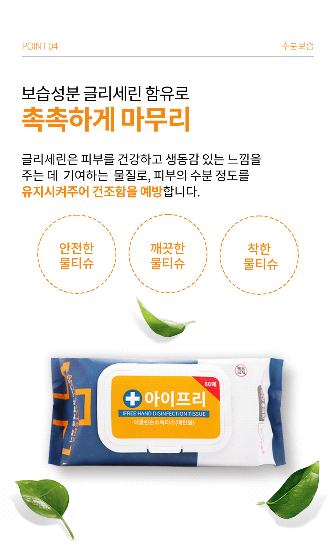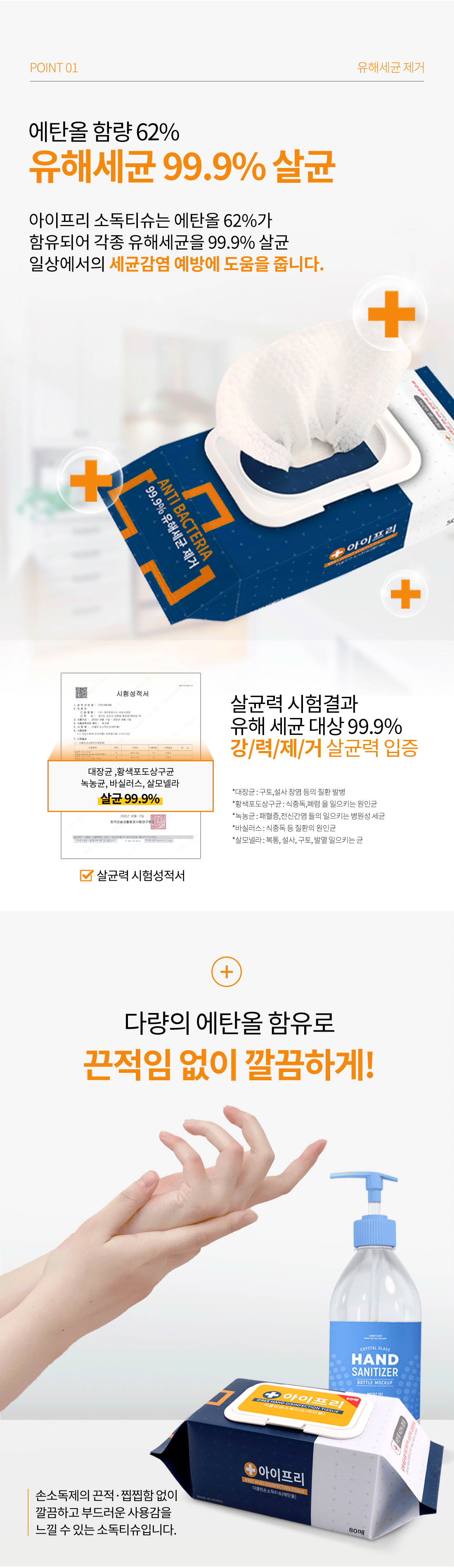 아이프리 더클린 손소독티슈 80매 8팩 캡형 알콜 살균 에탄올 62% 유해세균 차단 물티슈