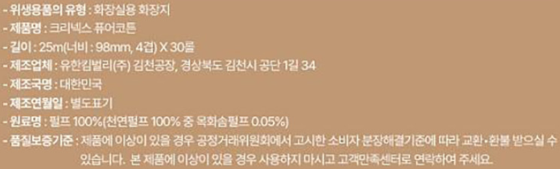 크리넥스 4겹 목화솜펄프 무색무향 퓨어코튼 30롤 1개