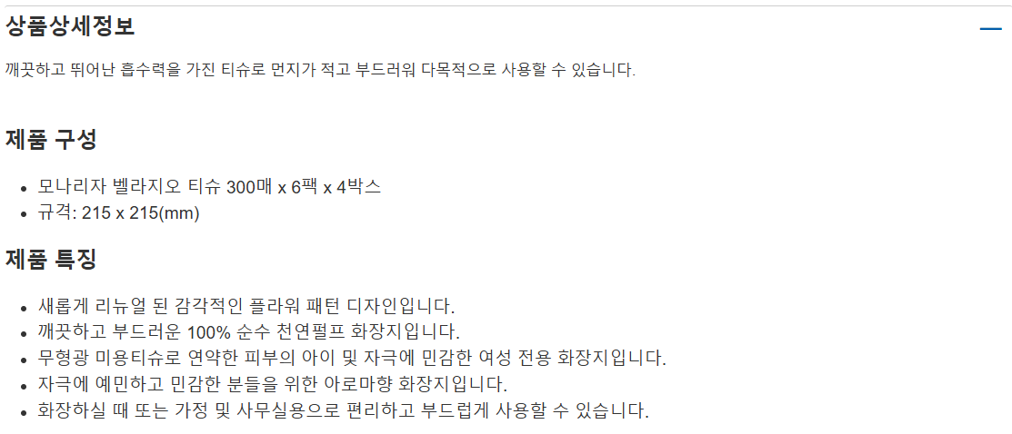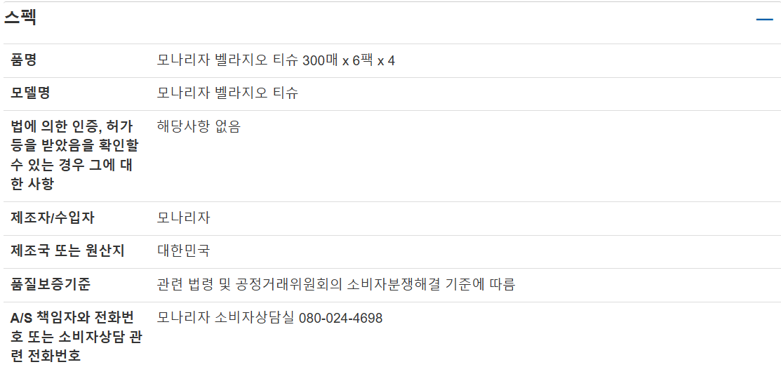 모나리자 미용티슈 300매 x 6 x 4팩 코스트코