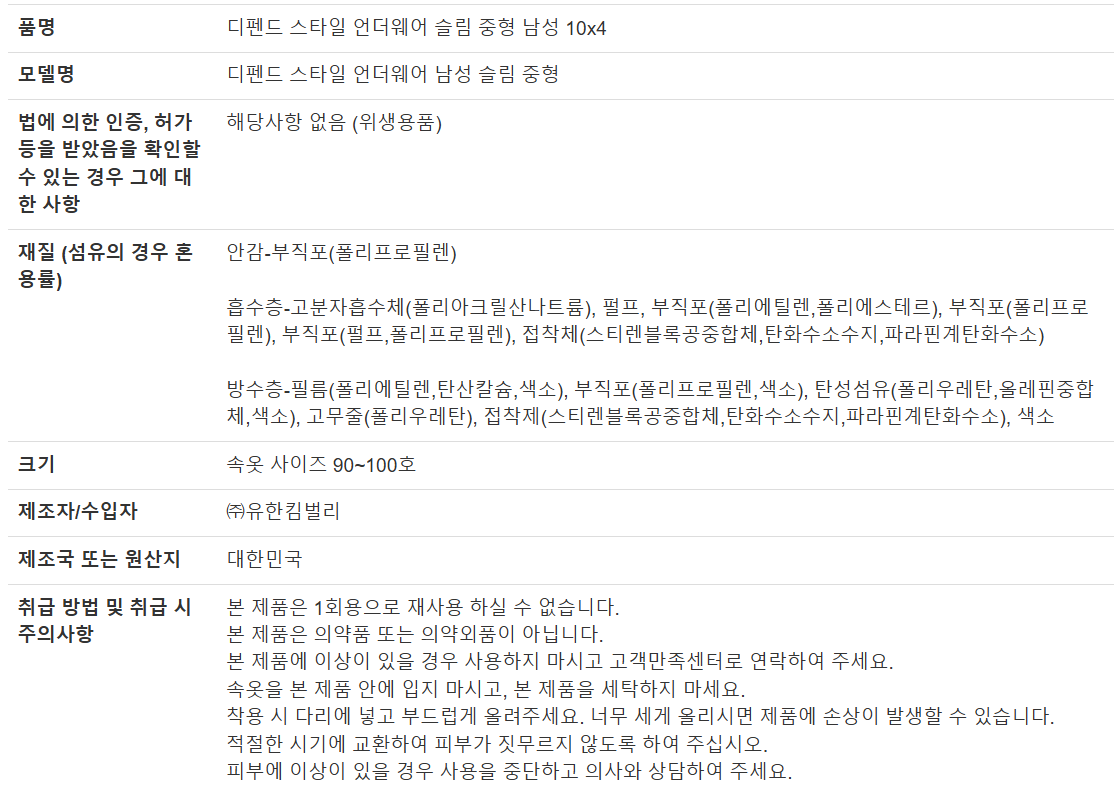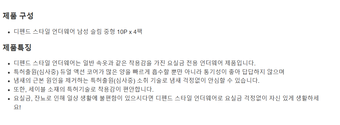 디펜드 스타일 언더웨어 슬림 중형 남성 10x4 코스트코