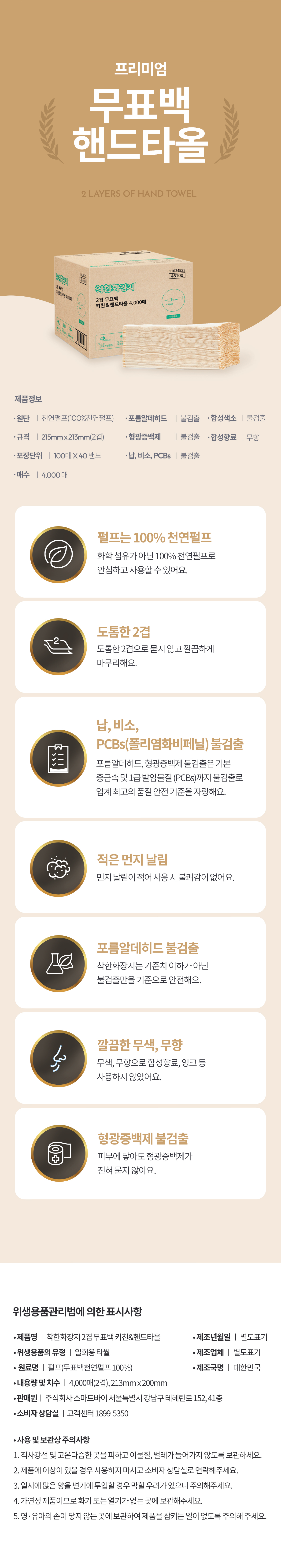 키친타올 착한화장지 무표백 프리미엄 2겹 4000매