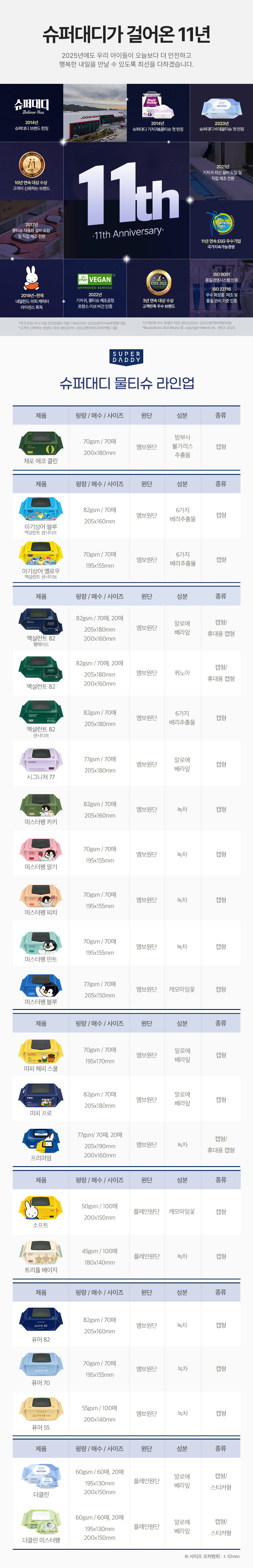 (현대홈쇼핑)슈퍼대디 미피 프로 아기물티슈 캡형 70매 20입 (82gsm)