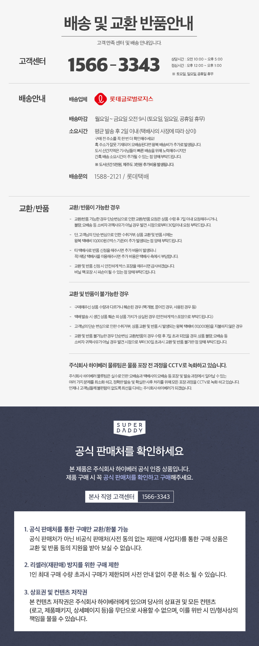 • 지역별 추가 반품배송비 (제주도 5,000원, 도서지역 5,000원)