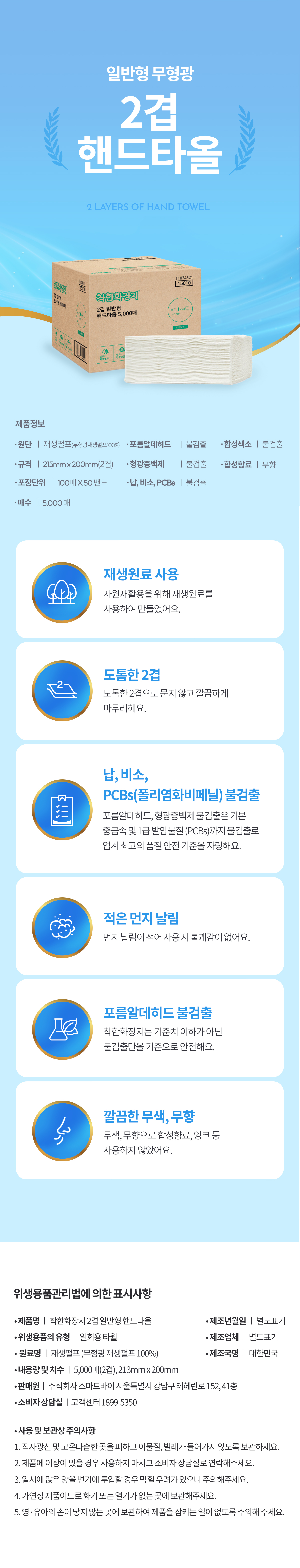 핸드타올 착한화장지 일반형 무형광 2겹 5000매