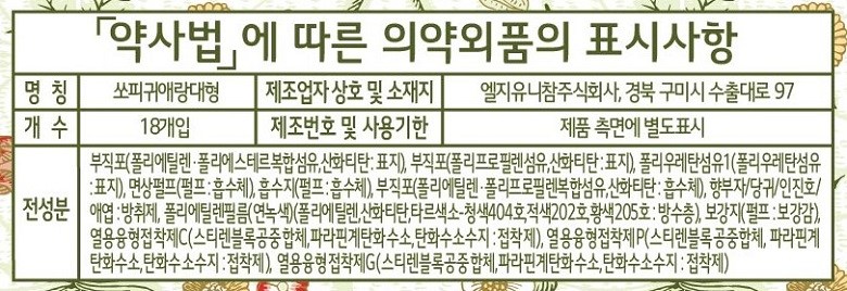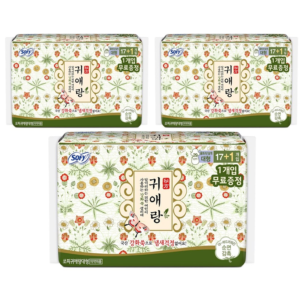 쏘피 생리대 귀애랑 생리대 날개형 대형 18개입 6개