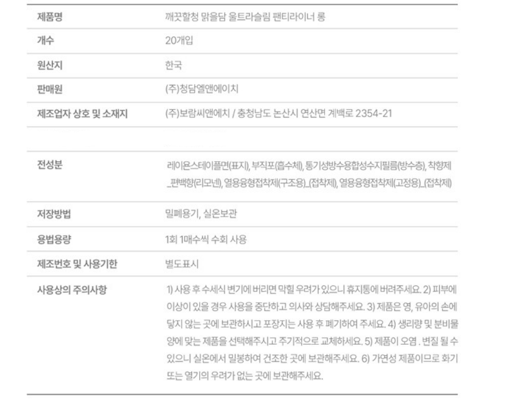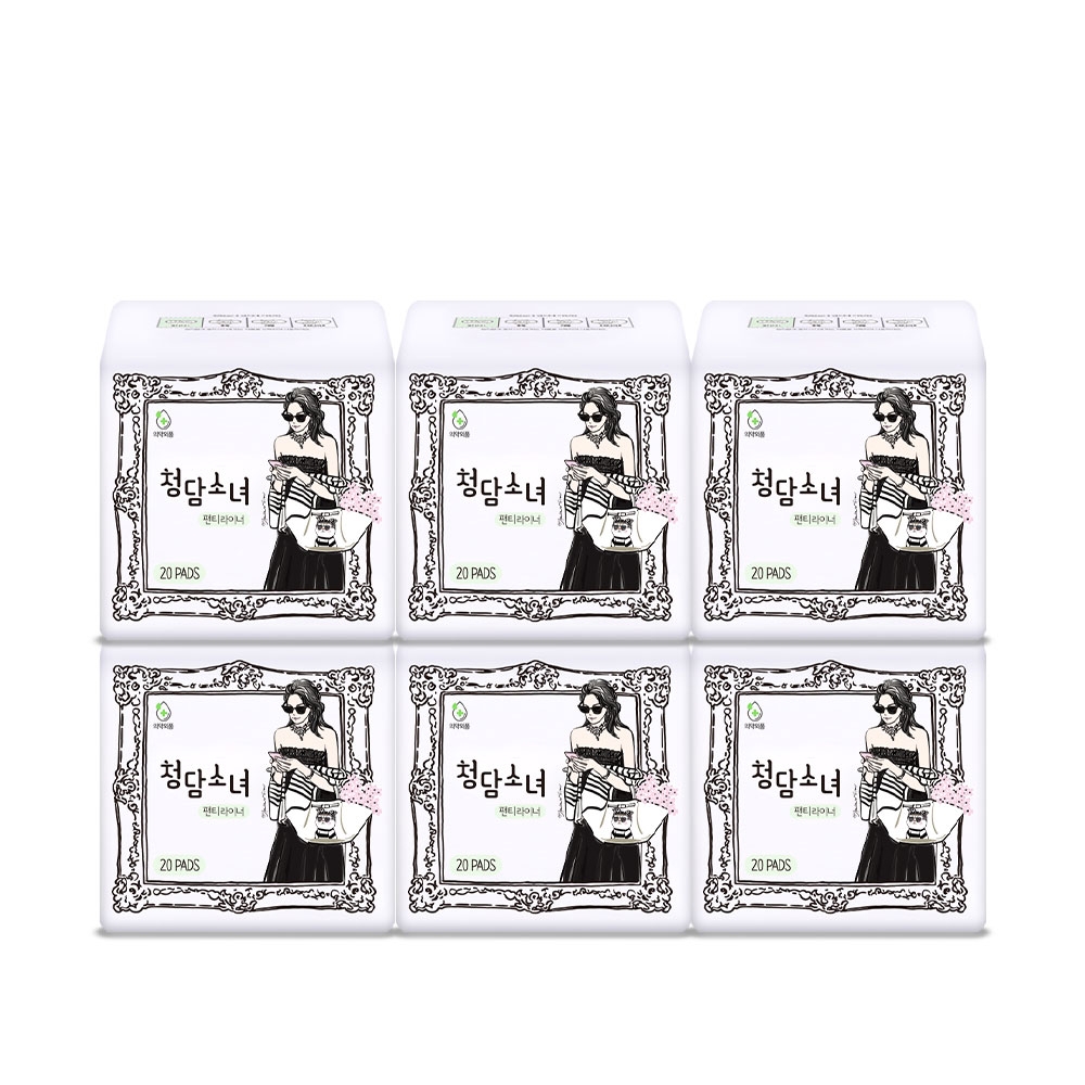 청담소녀 오리지널 생리대 팬티 라이너 롱 20p 6팩 초슬림 팬티라이너 비건 생리대 대나무 탑시트