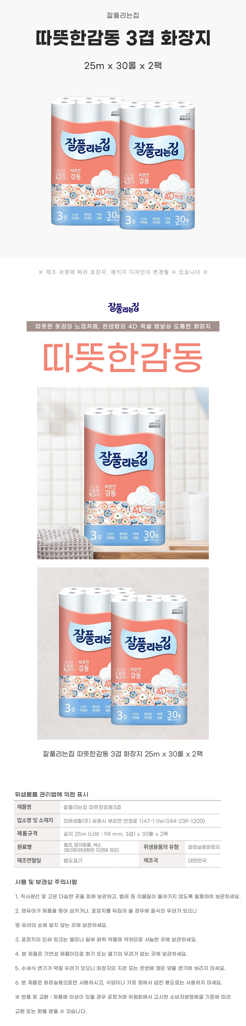 잘풀리는집 따뜻한감동3겹 25m30롤 2팩