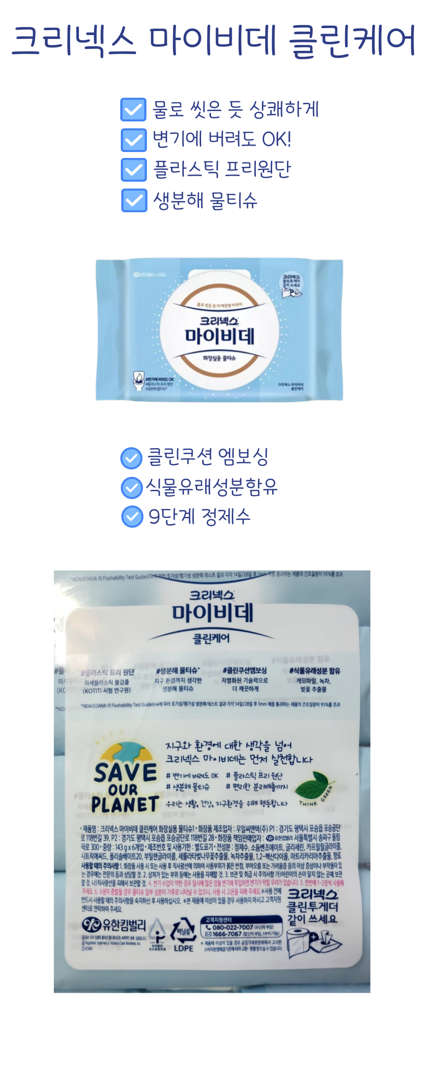 (NS홈쇼핑)마이비데 물티슈 대용량 캡형 60매 x 9팩 클린케어 화장실용 비데용 물에녹는 비..35429555