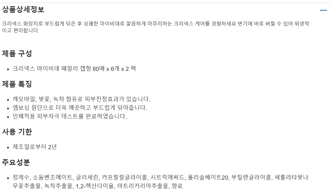 크리넥스 마이비데 캡형60매x 6 x 2팩 코스트코