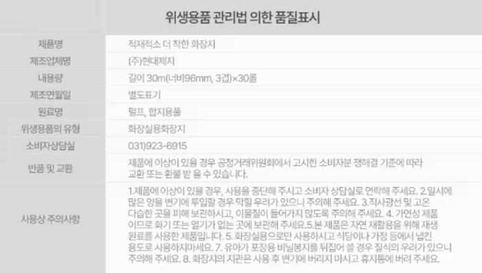 상품명더 착한 화장지 무형광 3겹 30M 30롤 2개 총60롤r / 기본