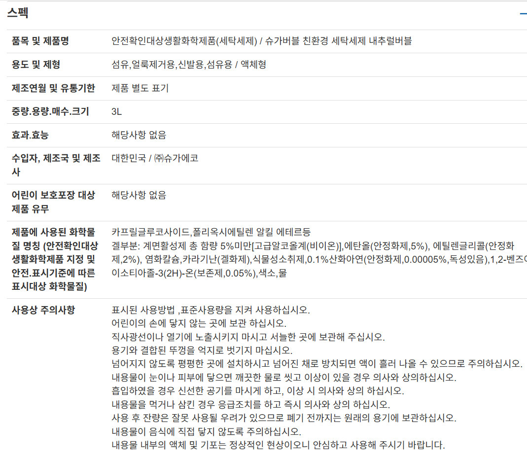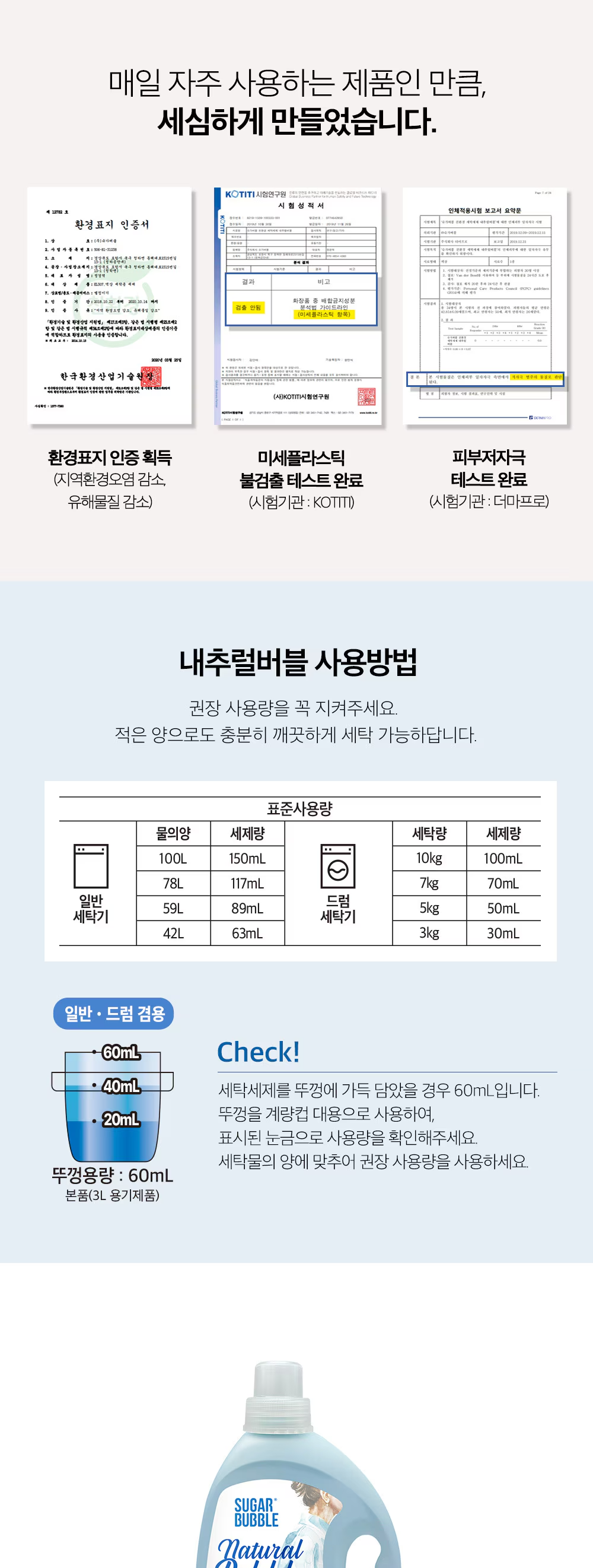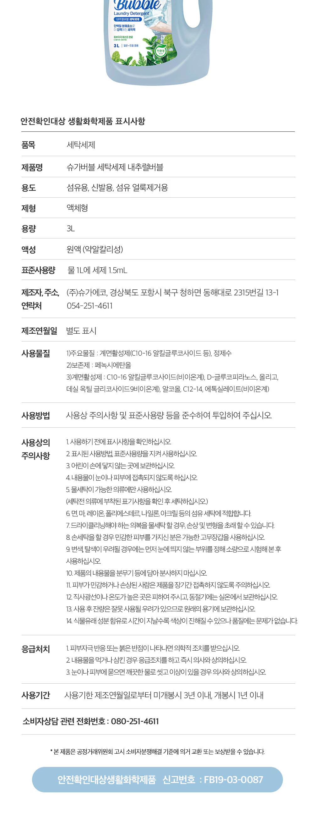 슈가버블 친환경 세탁세제 내추럴버블 3L x 4 코스트코