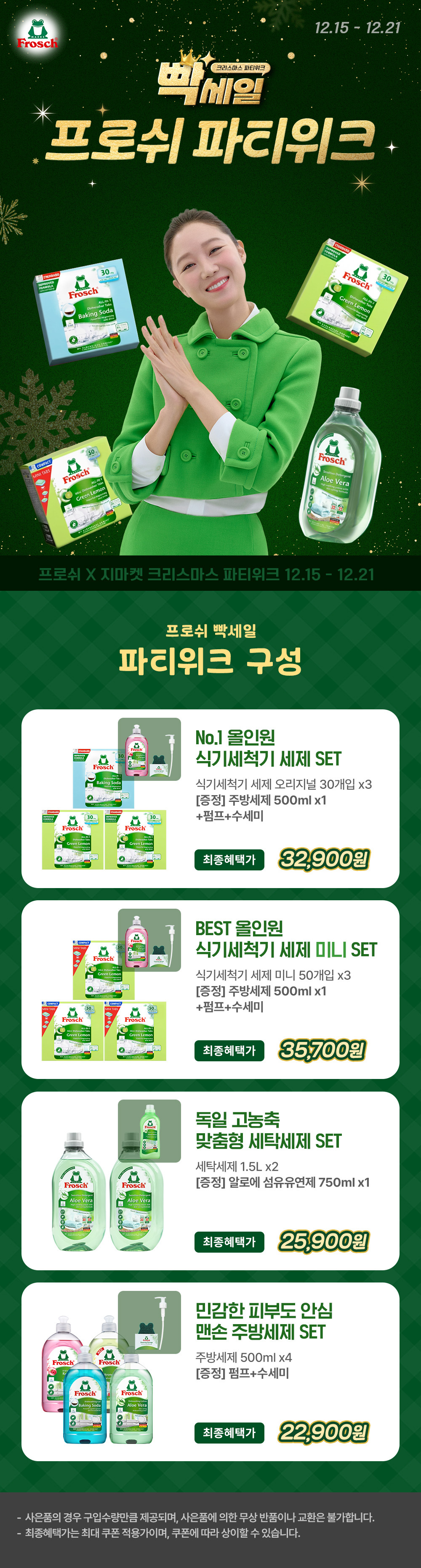 프로쉬 독일 식기세척기세제 미니 50개입 그린레몬 3개+주방세제 500ml 1개(랜덤)+펌프+수세미 / 공효진세제