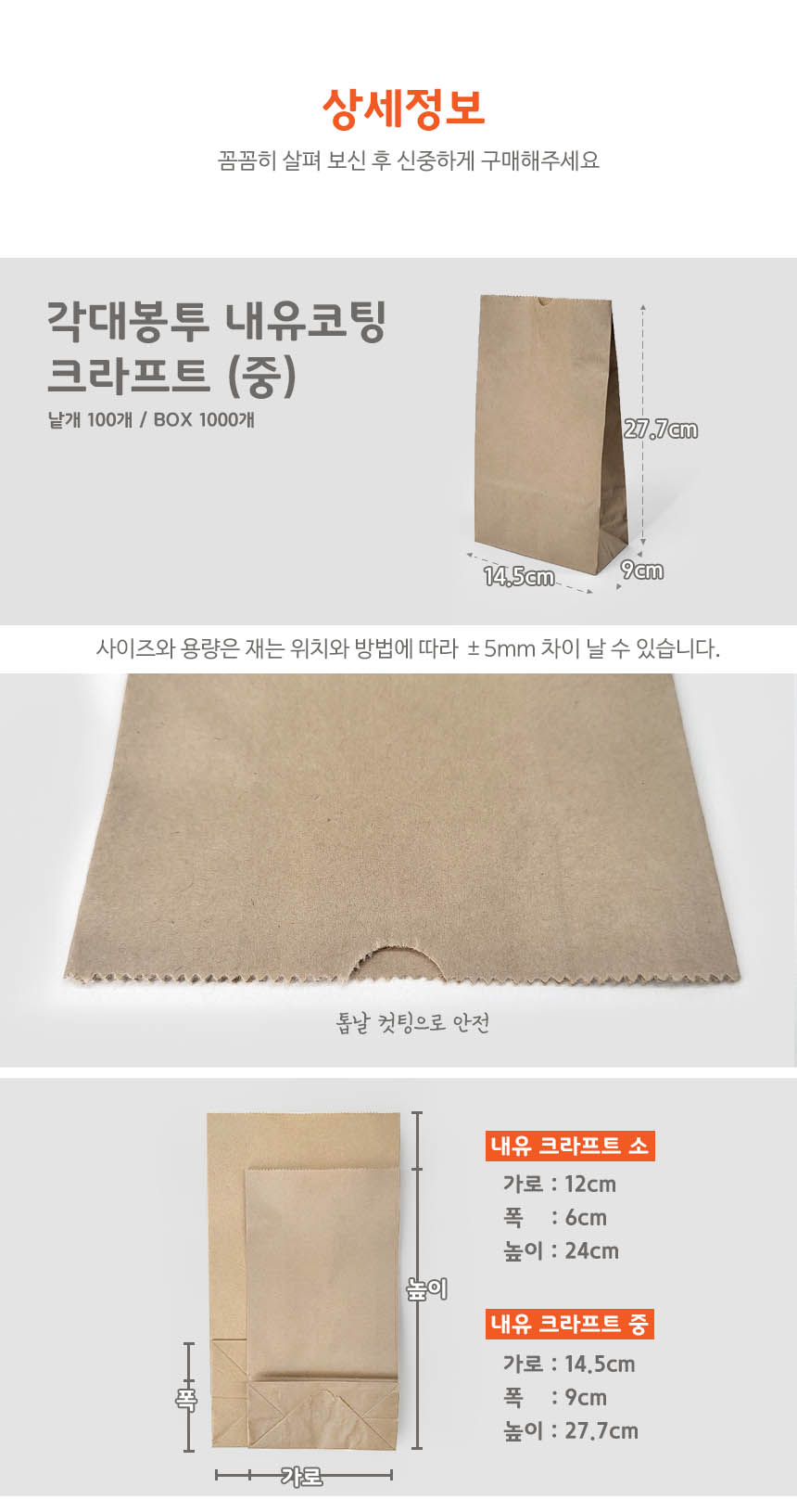 종이봉투 각대봉투 내유코팅 크라프트 (중) 100장