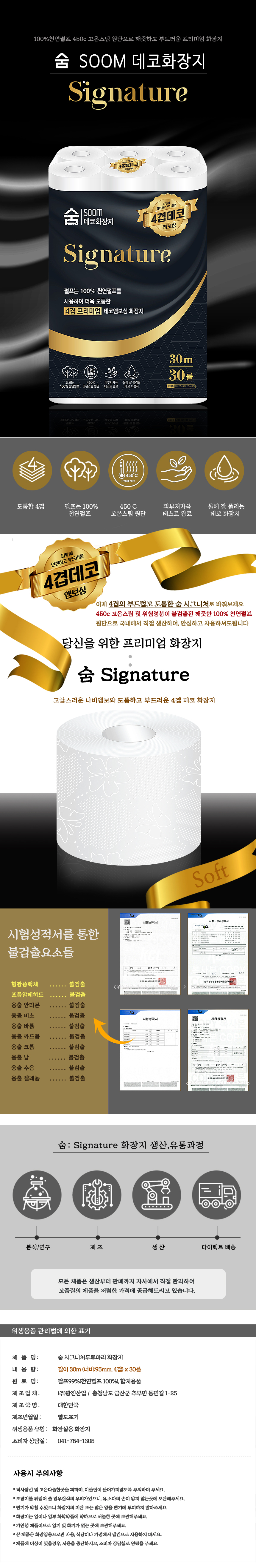 숨 시그니처 4겹 두루마리 화장지 30M 30롤 1팩 휴지