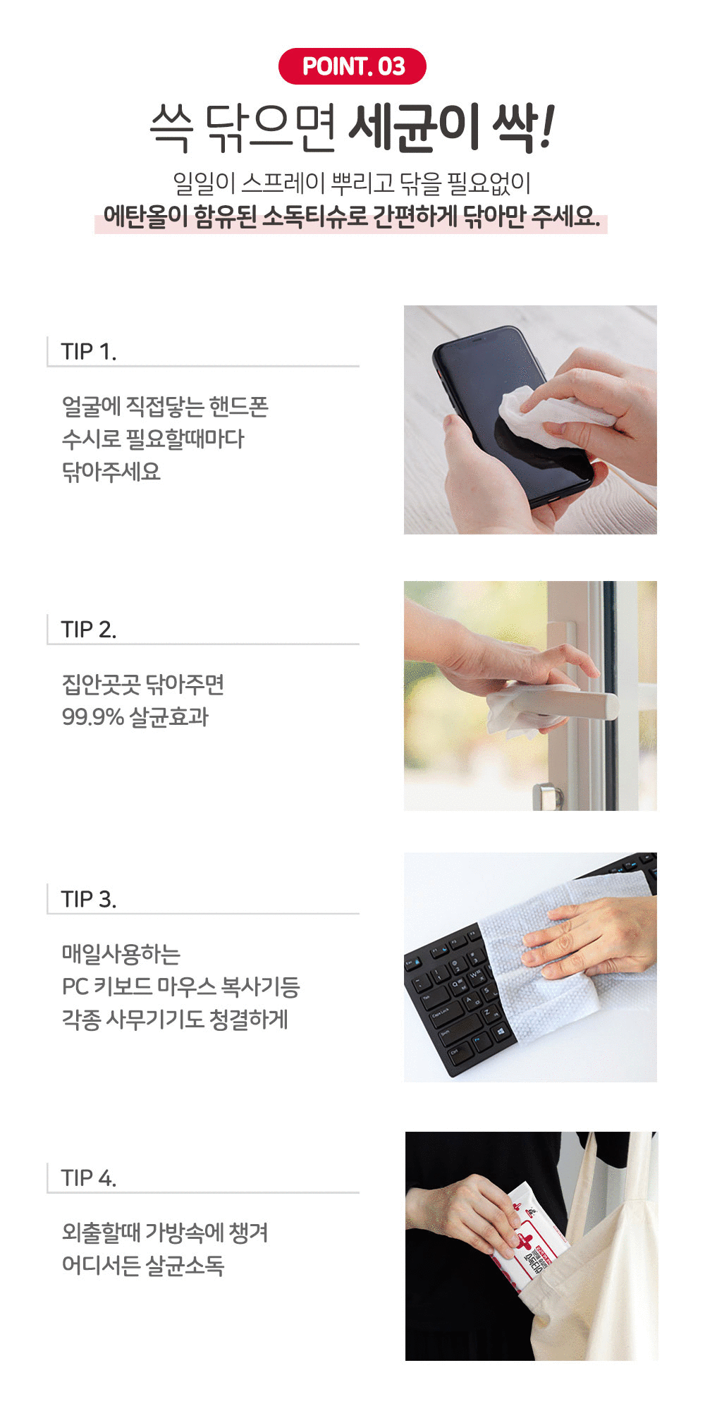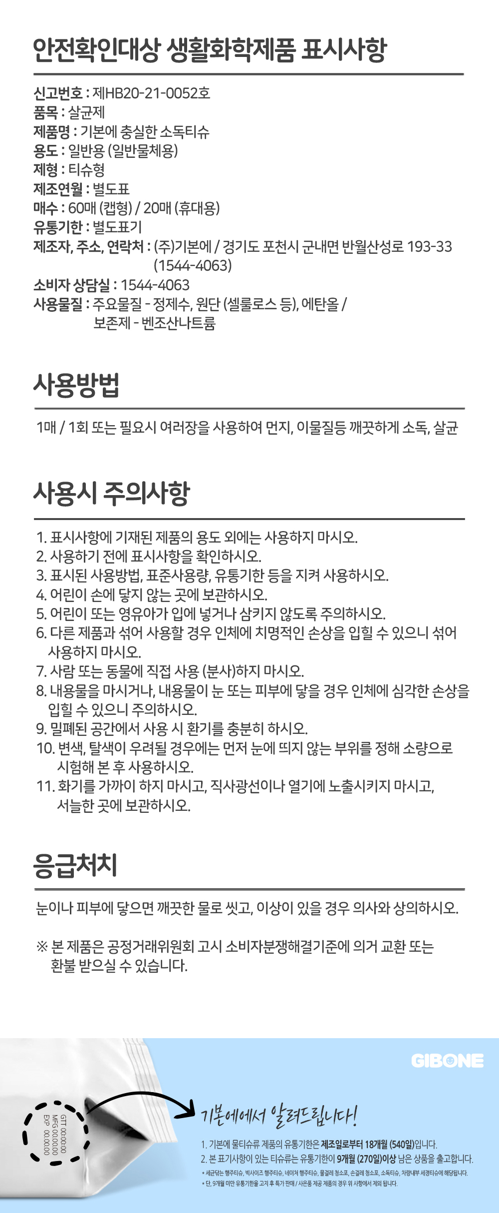 충실한 소독티슈 60매 5팩 + 손걸레청소포 80매 5팩