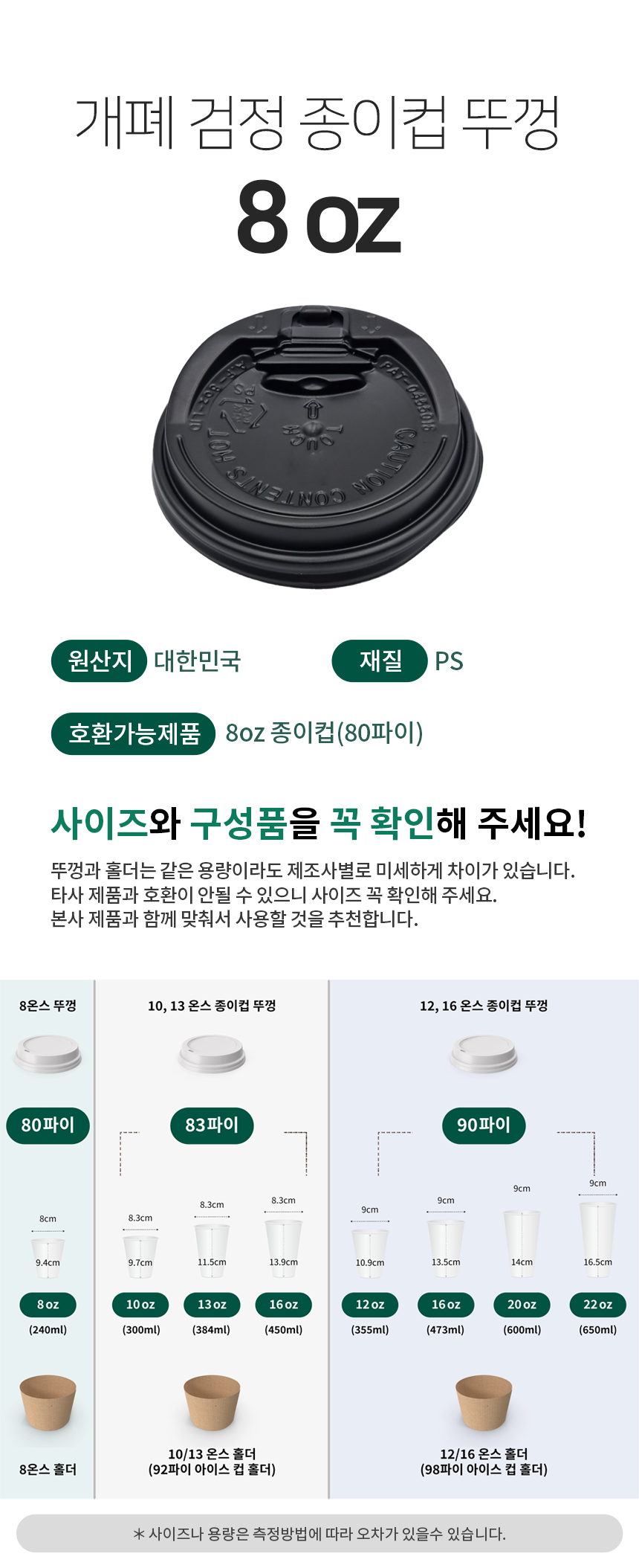 뉴카페마켓 8온스 개폐 검정 종이컵 뚜껑 1000개