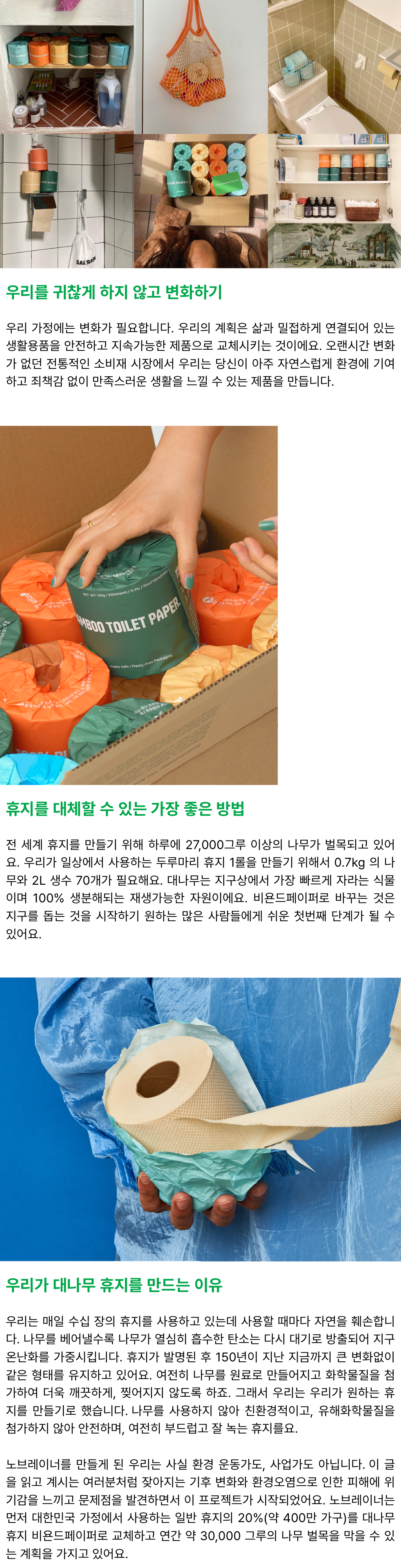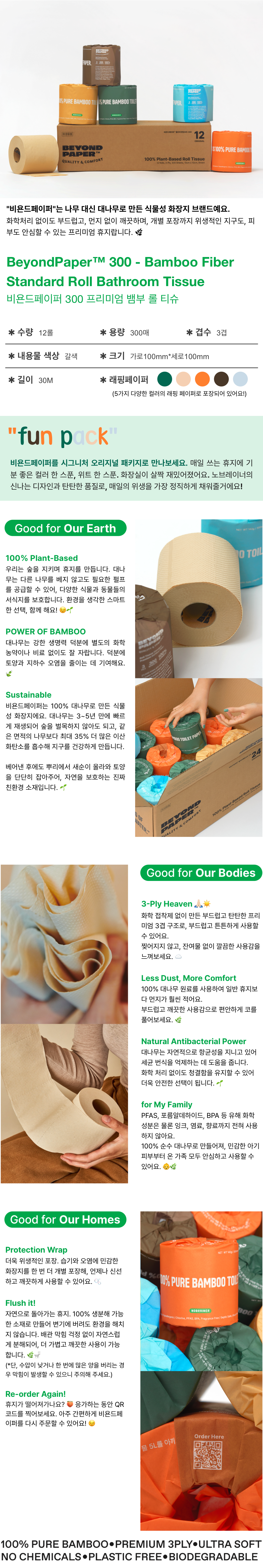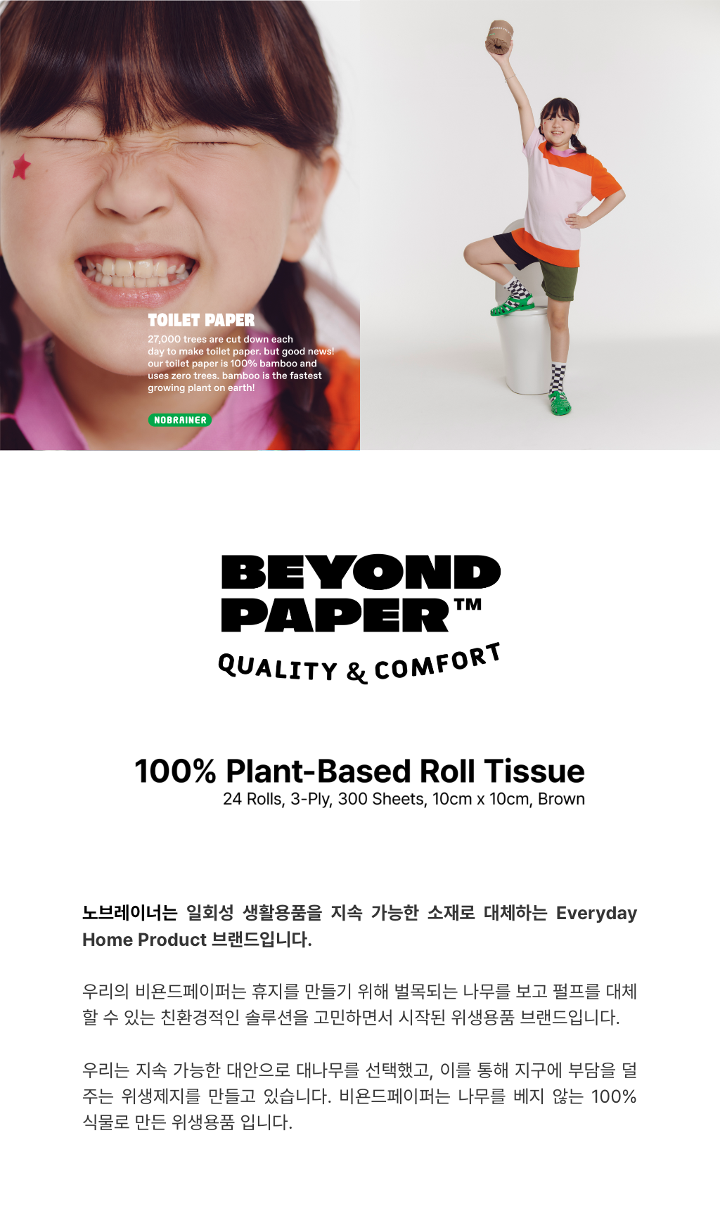 (노브레이너)비욘드페이퍼 화장지 3겹 30m 12롤 천연펄프 프리미엄 대나무 - 오리지널