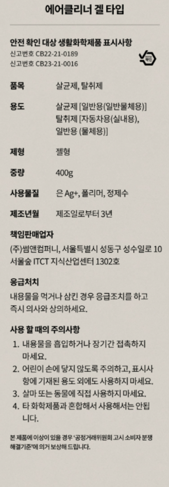 글로썸 에어클리너 겔 무향 탈취제 리필팩 1세트 강한 살균효과 1세트