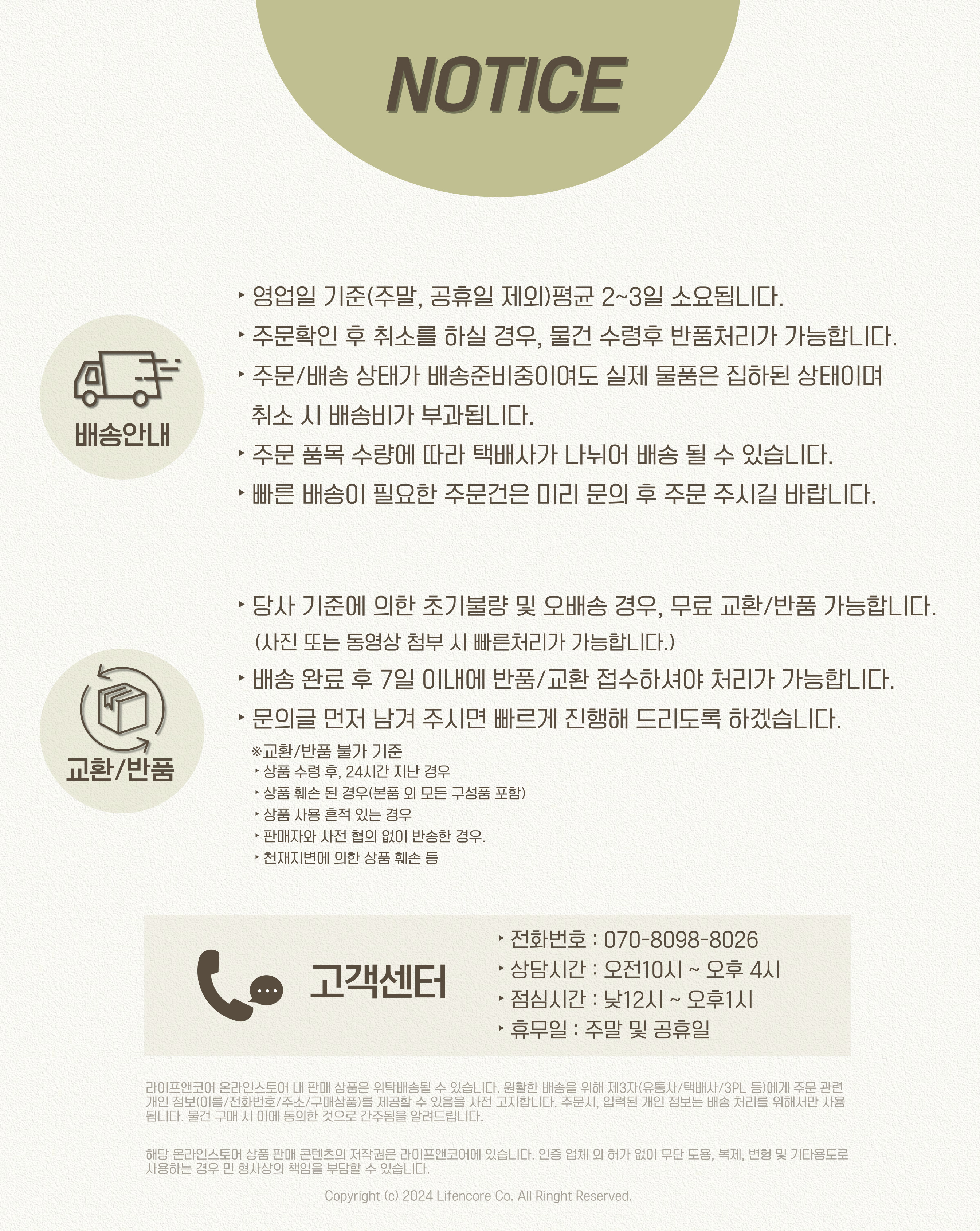 5. A/S 책임자와 전화번호 또는 소비자 상담 관련 전화번호 : 상품상세참고