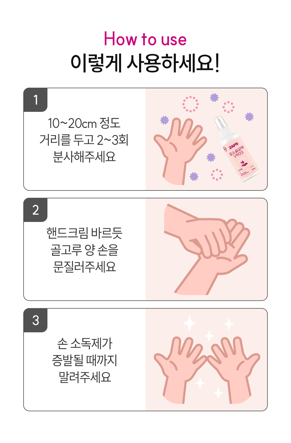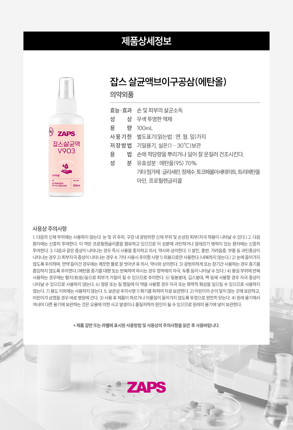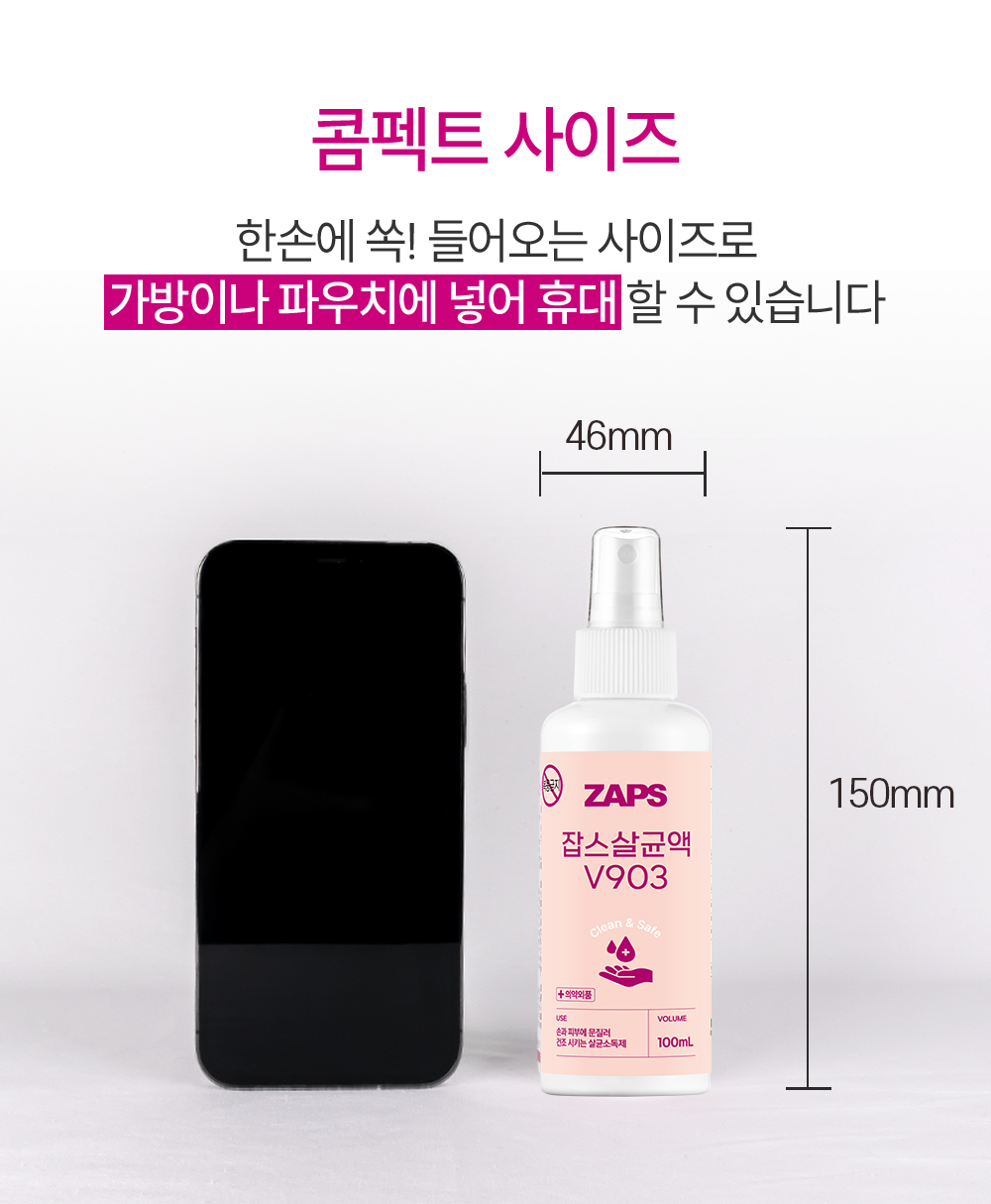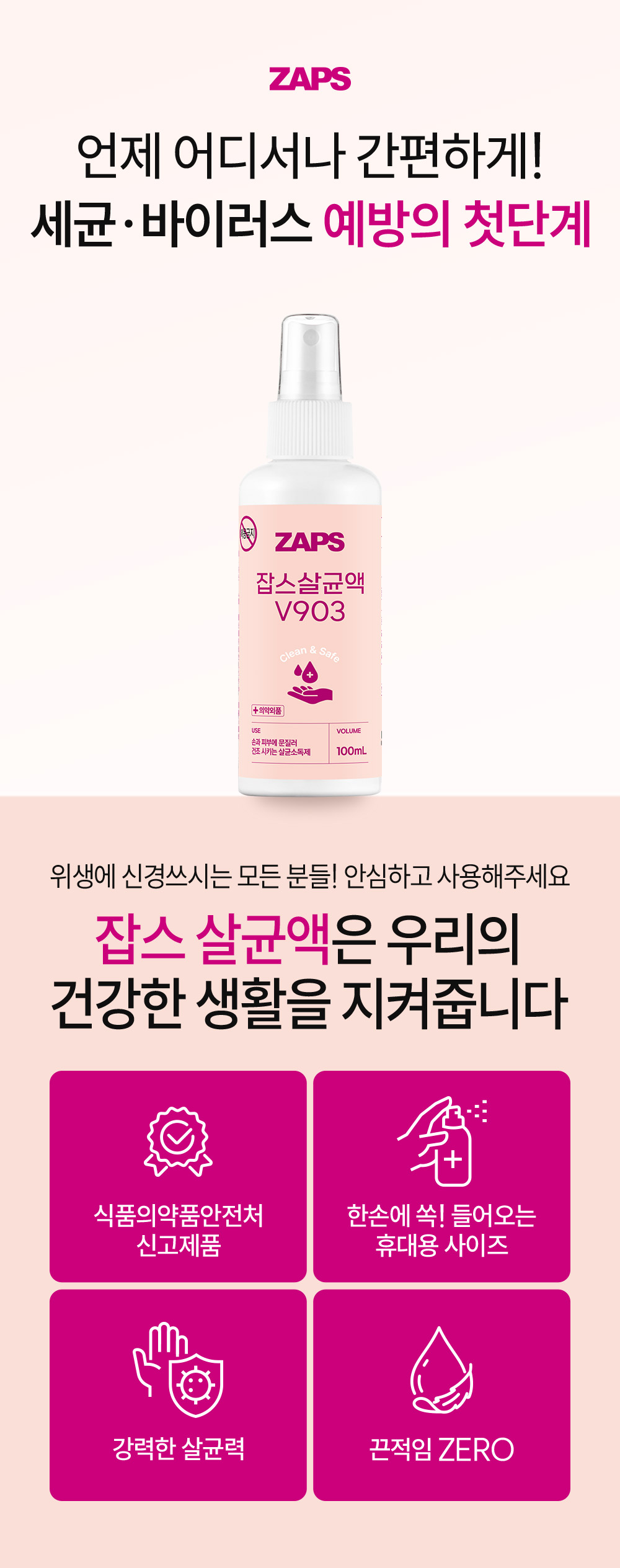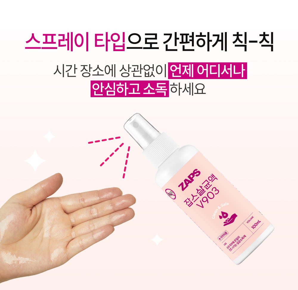 잡스 손소독제 100ml 살균액 3개세트 식약처인증 의류 휴대용 스프레이