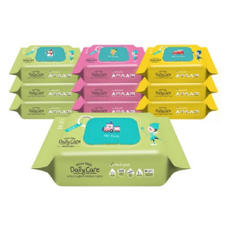 데일리케어 낱말놀이 아기물티슈 캡형 비행기 소방차 자전거 기차 20개(1박스)