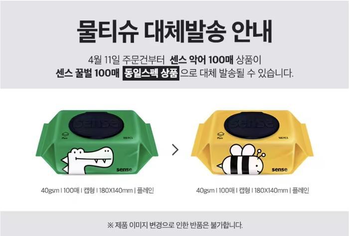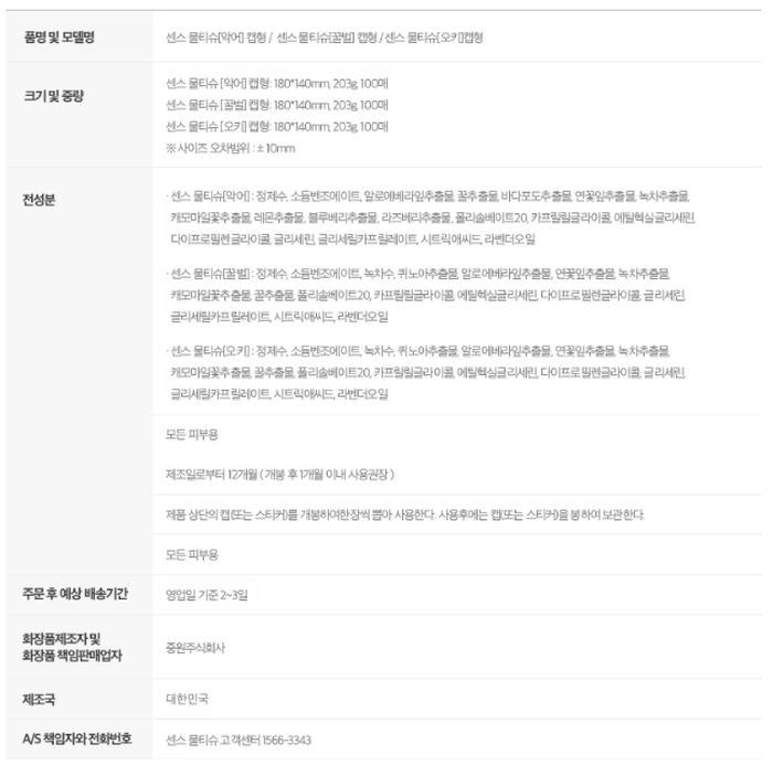 센스 물티슈 대용량 악어 캡형 100매 20팩
