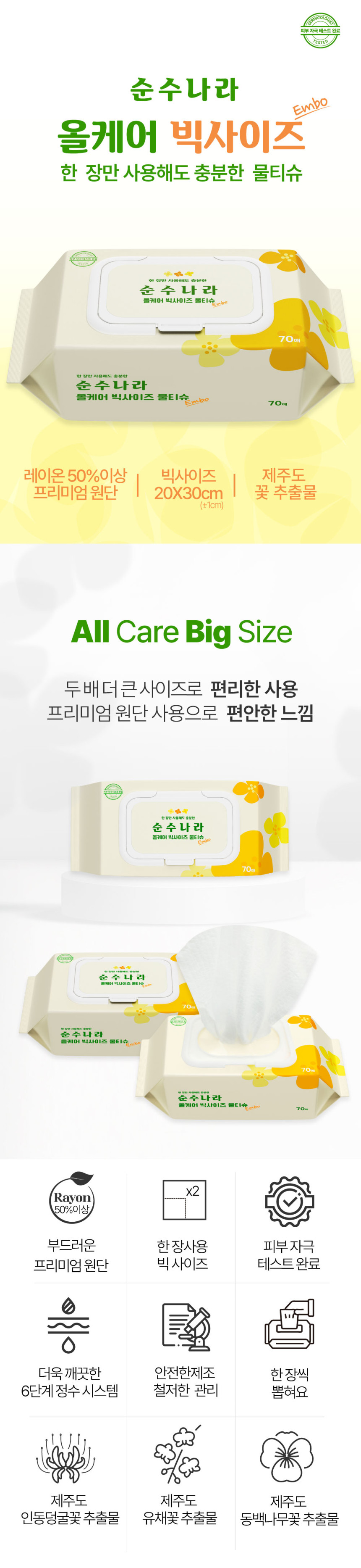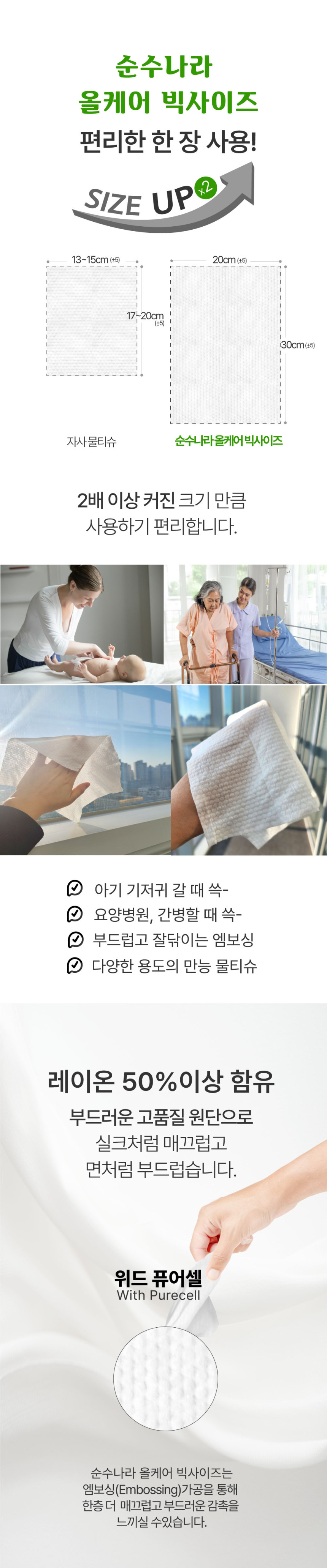 순수나라 올케어 빅사이즈 점보 물티슈 70매 8팩