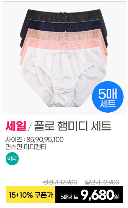 (15+10%쿠폰) 데일리 여성팬티 5매/면팬티/맥시/미디/여자/여성/속옷/누디/위생/빅사이즈/노라인