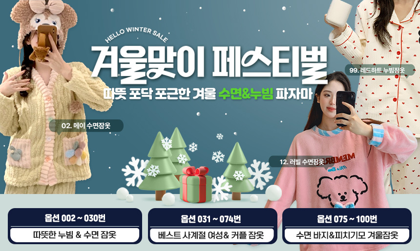 (15+5%할인) 월동준비 수면잠옷 따뜻 포근한 누빔 피치기모 겨울 홈웨어 사계절 파자마 모음