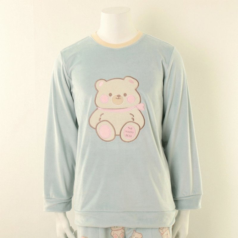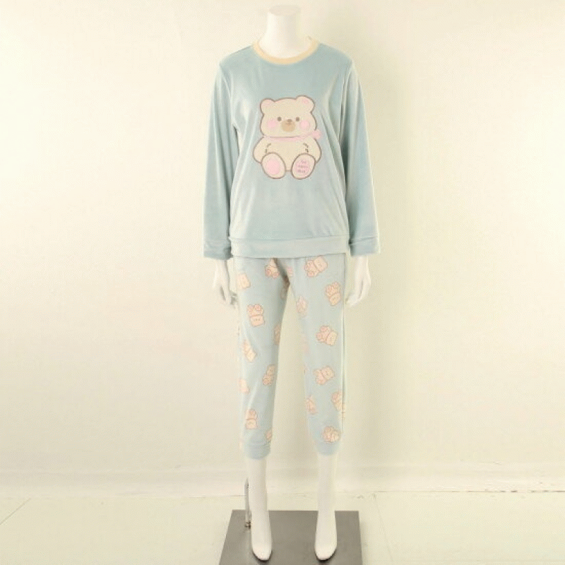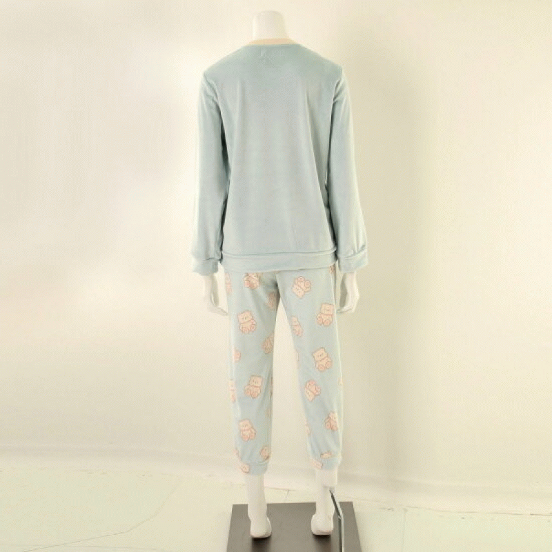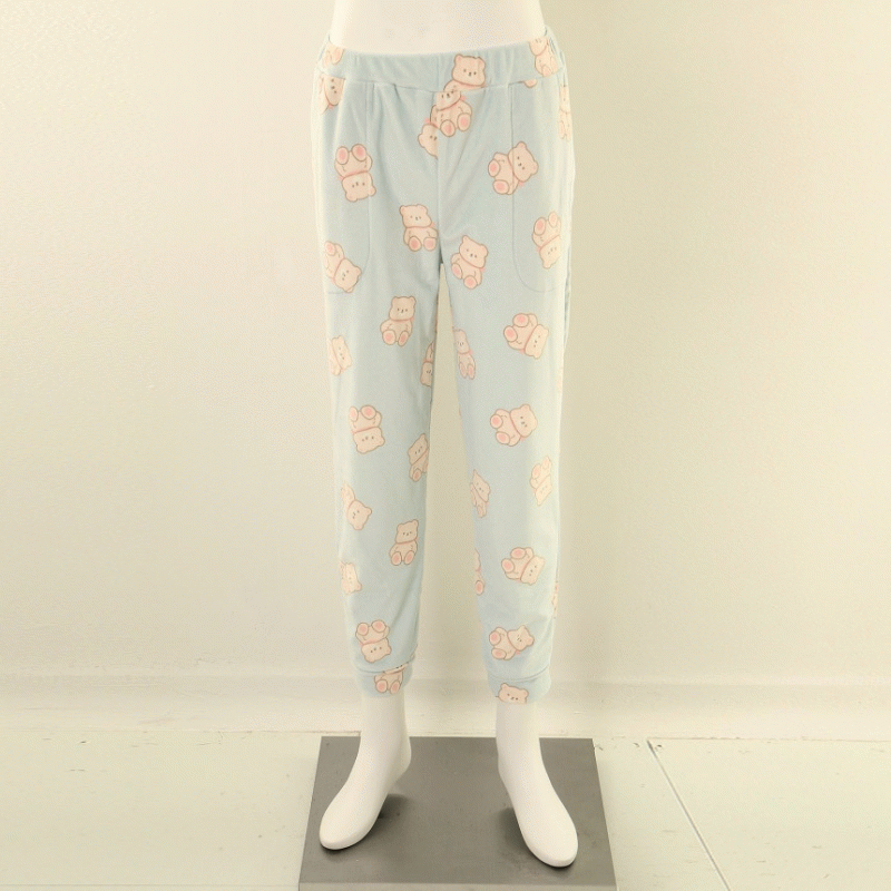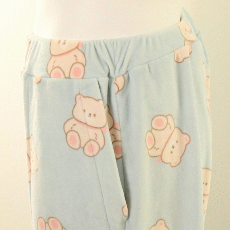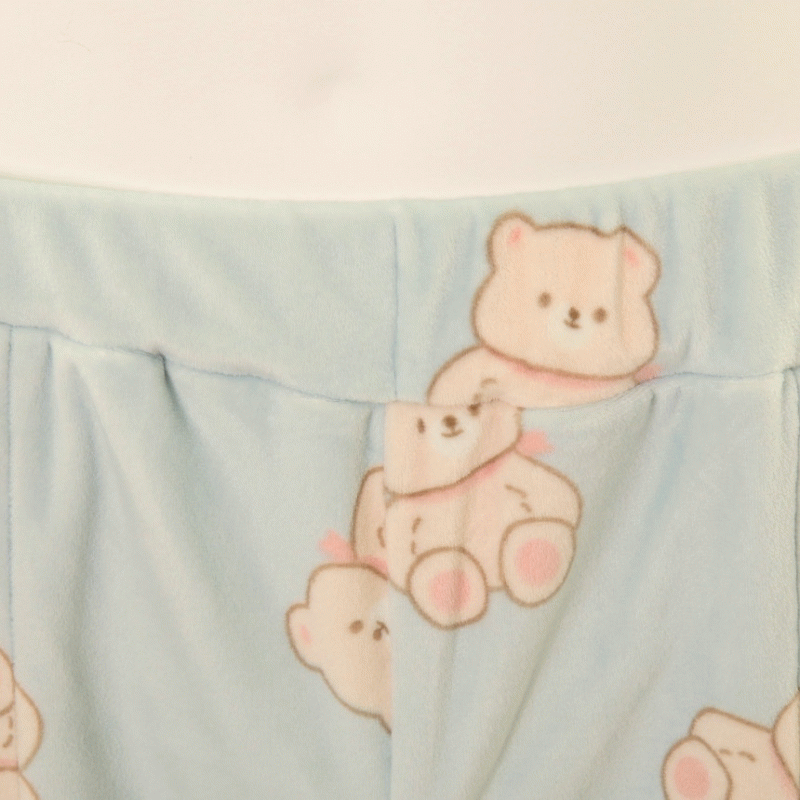 하의는 귀여운 곰돌이 나염 극세사 원단으로 깜찍하고 편하게 착용 가능합니다.
