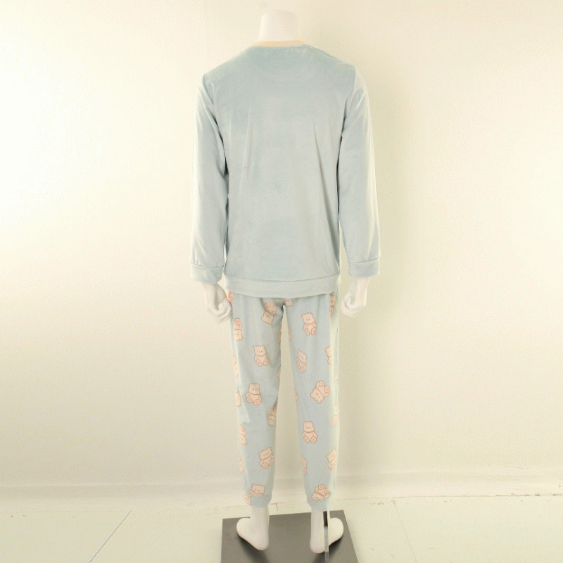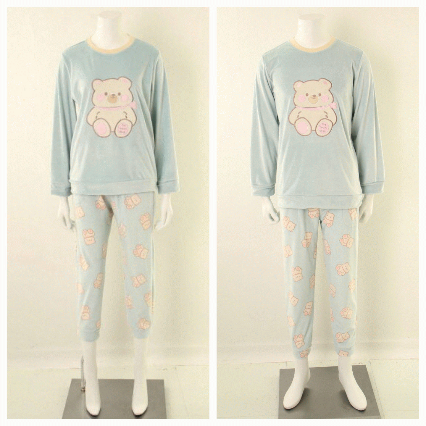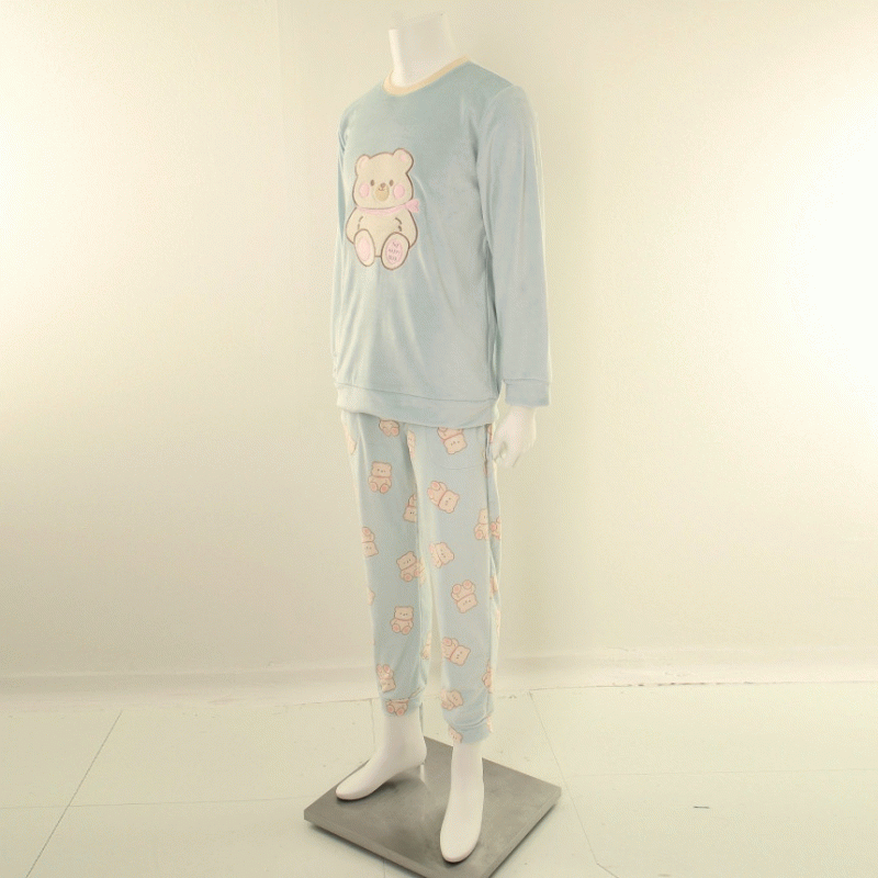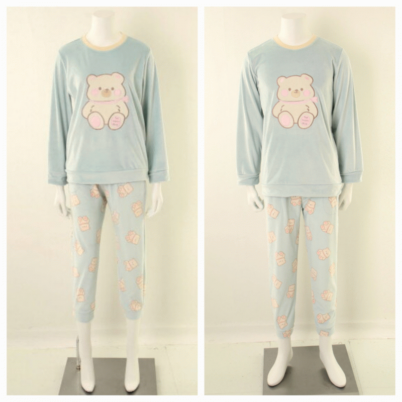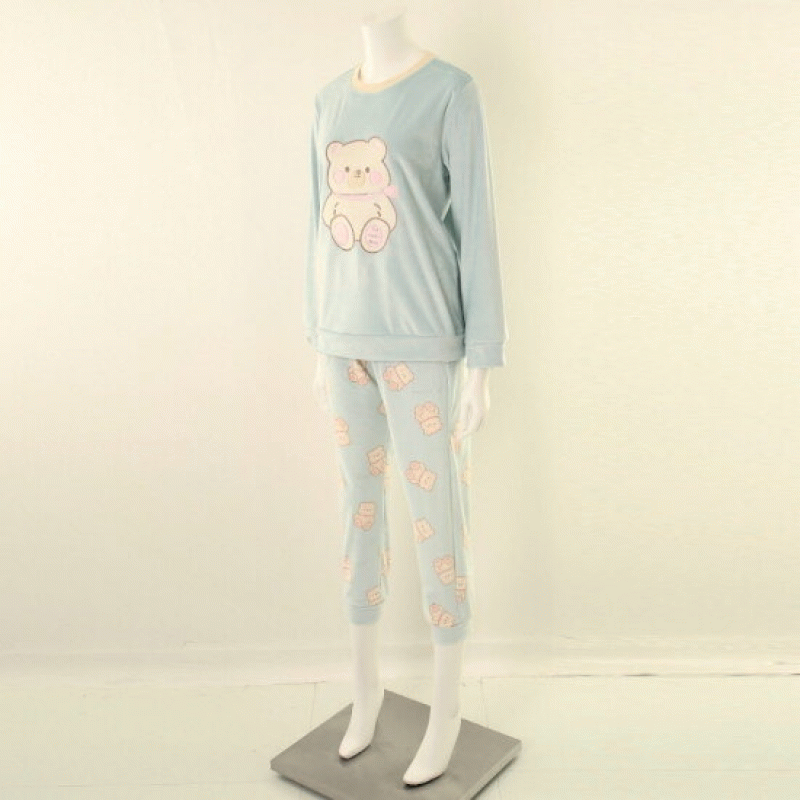 하의는 귀여운 곰돌이 나염 극세사 원단으로 깜찍하고 편하게 착용 가능합니다.