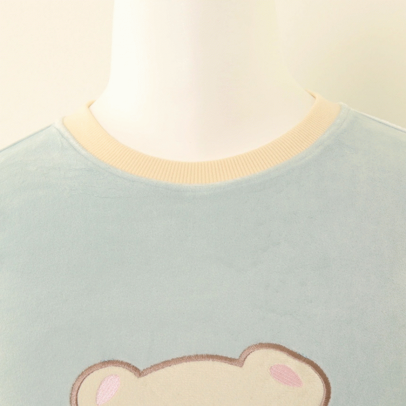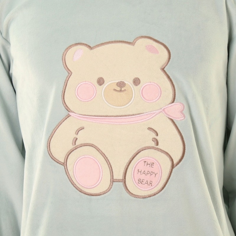 상의는 솔리드 민트 컬러위에 귀여운 곰돌이가 자수로 포인트가 되는 제품 입니다.
