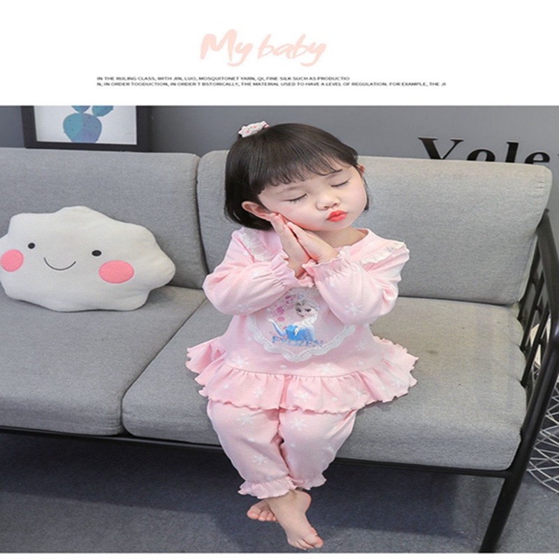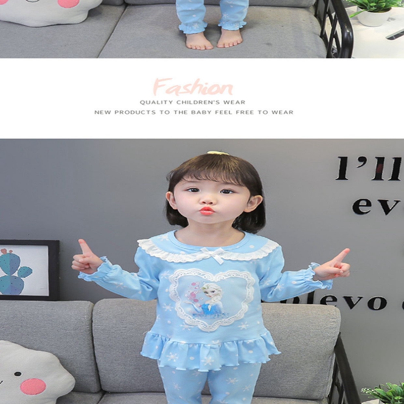 뜨거운 판매 패션 새로운 봄 가을 여름 소녀 옷 아기 만화 냉동 엘사 인쇄 긴 소매 티셔츠 + 바지 잠옷 세트 어린이 소년 가을 의상 의류 잠옷 파자마 정장 크리스마스 잠옷 아동복 드레스 여자 추적 번호 1T 2T 3T 4T 5T 6T 7T 1 -7세