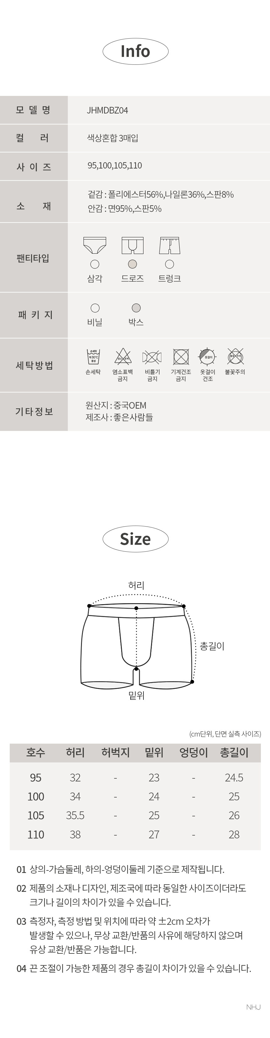 JD 남성 소프트 스판 드로즈 팬티 세트 3P+3P JHMDBZ04