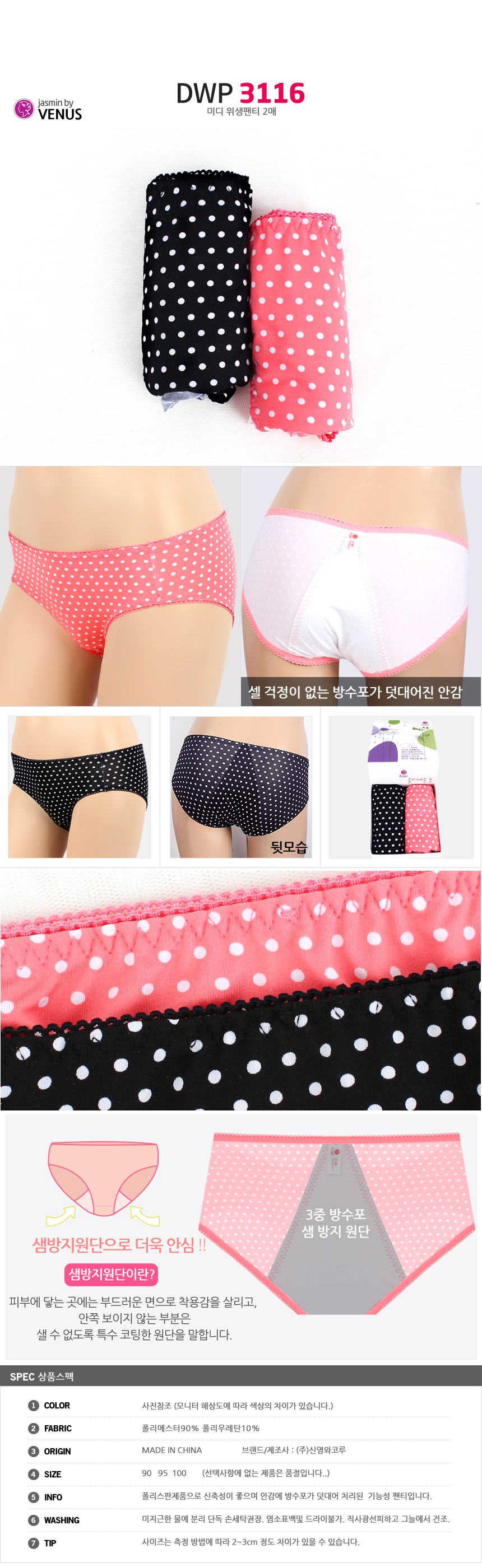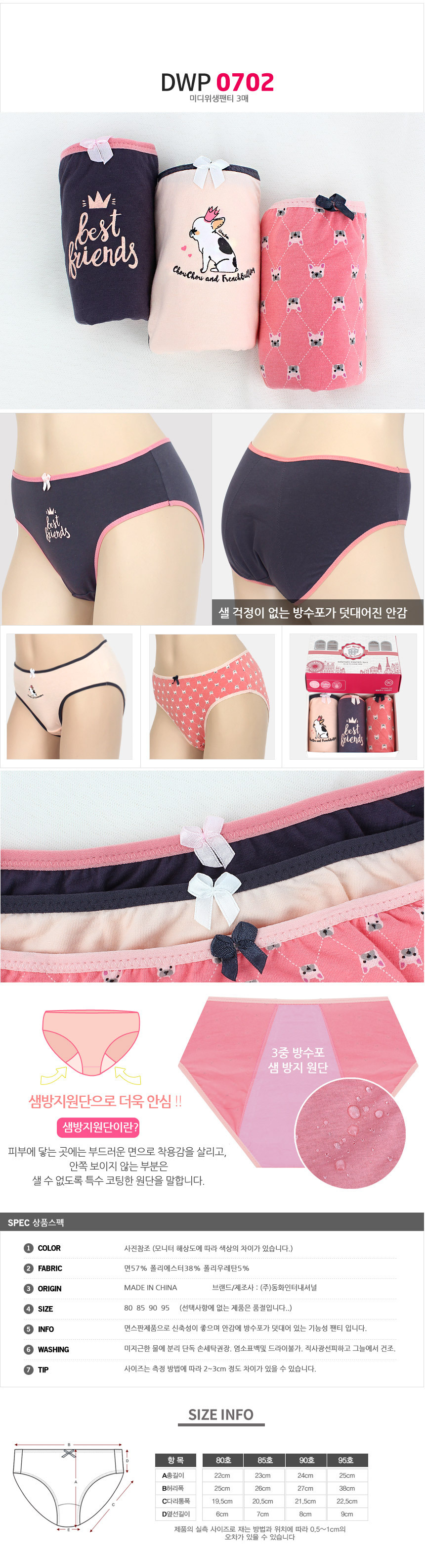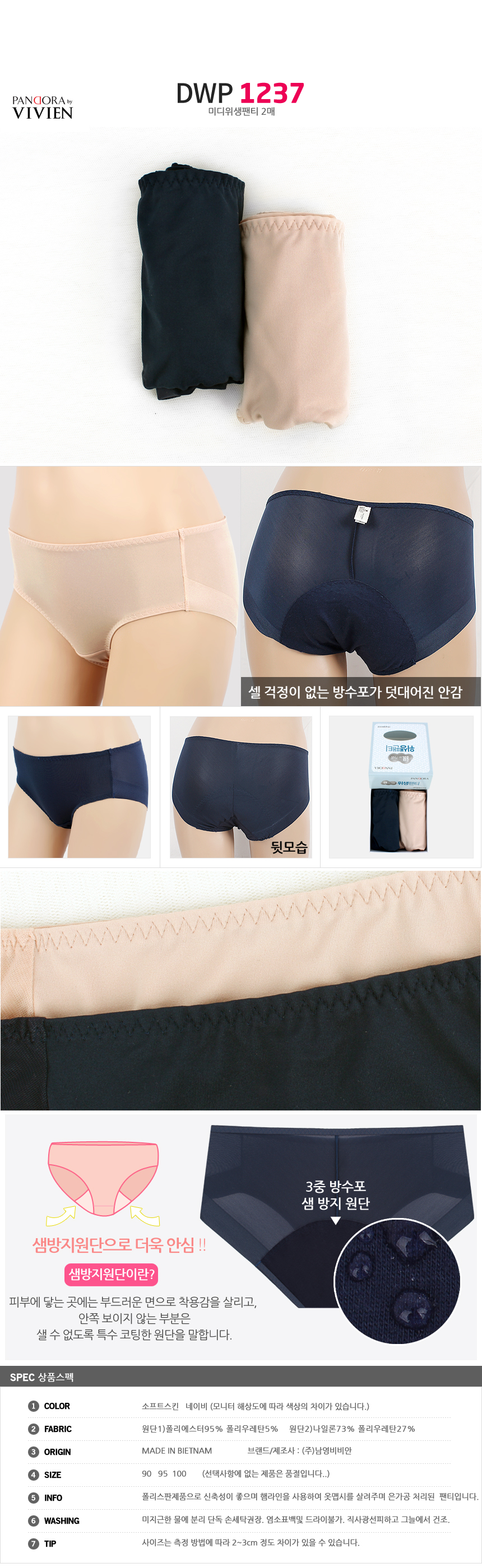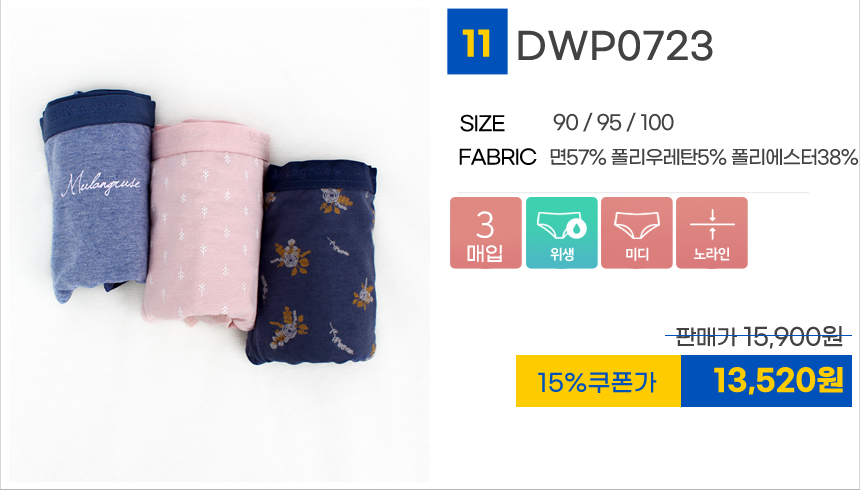 (11+10+4%쿠폰)비비안 외 위생팬티 여성 여자 속옷 주니어 학생 방수포 샘방지 면스판 3매 2매