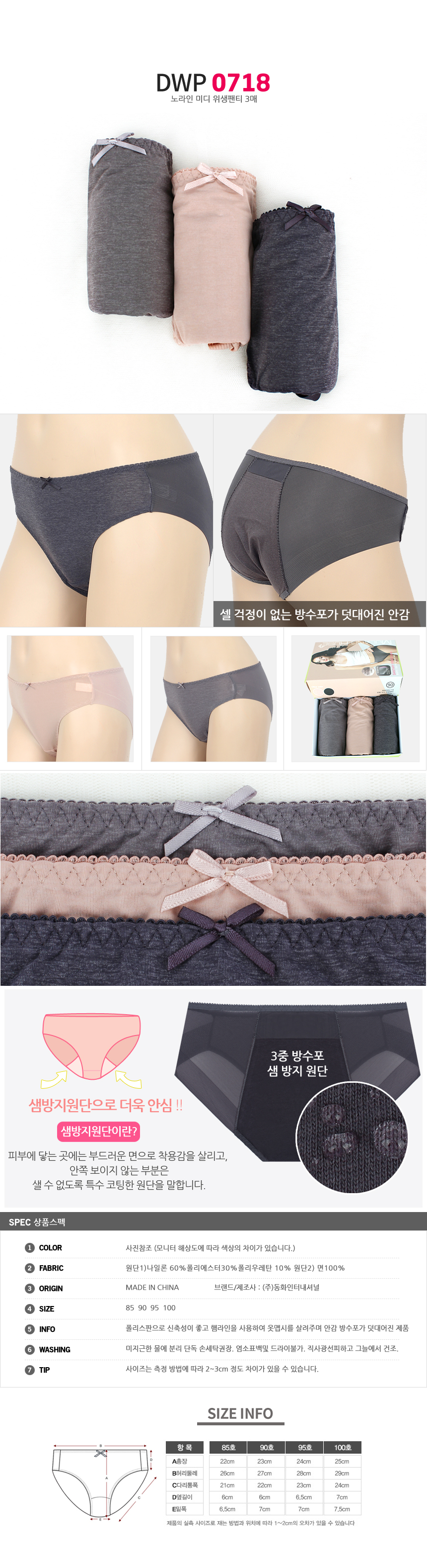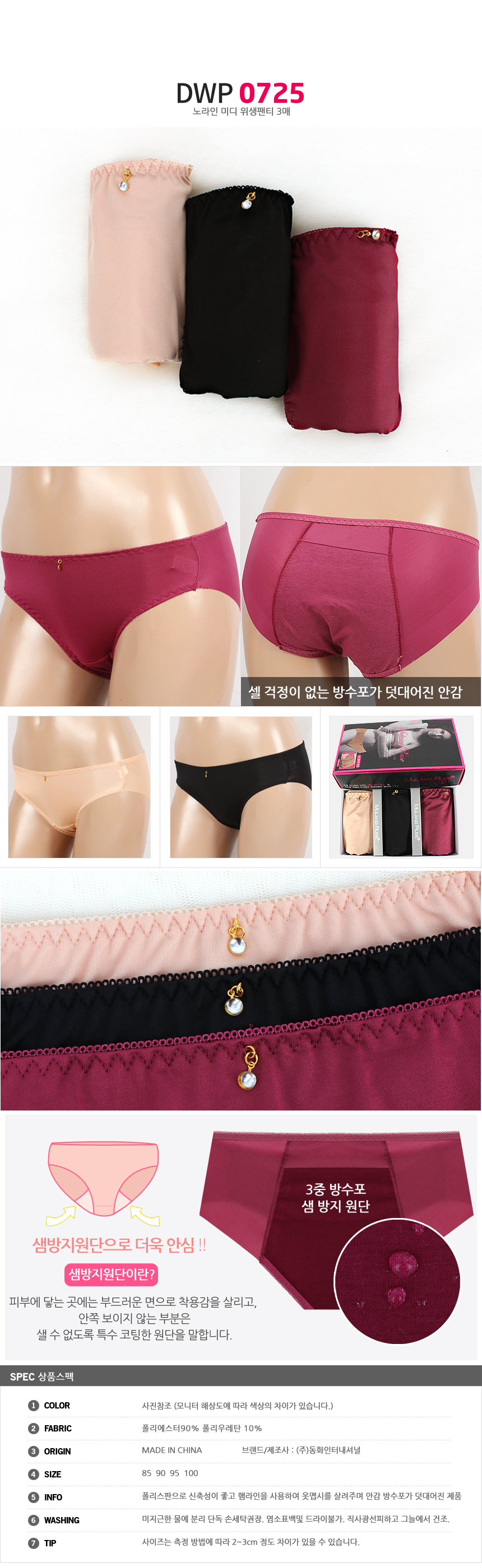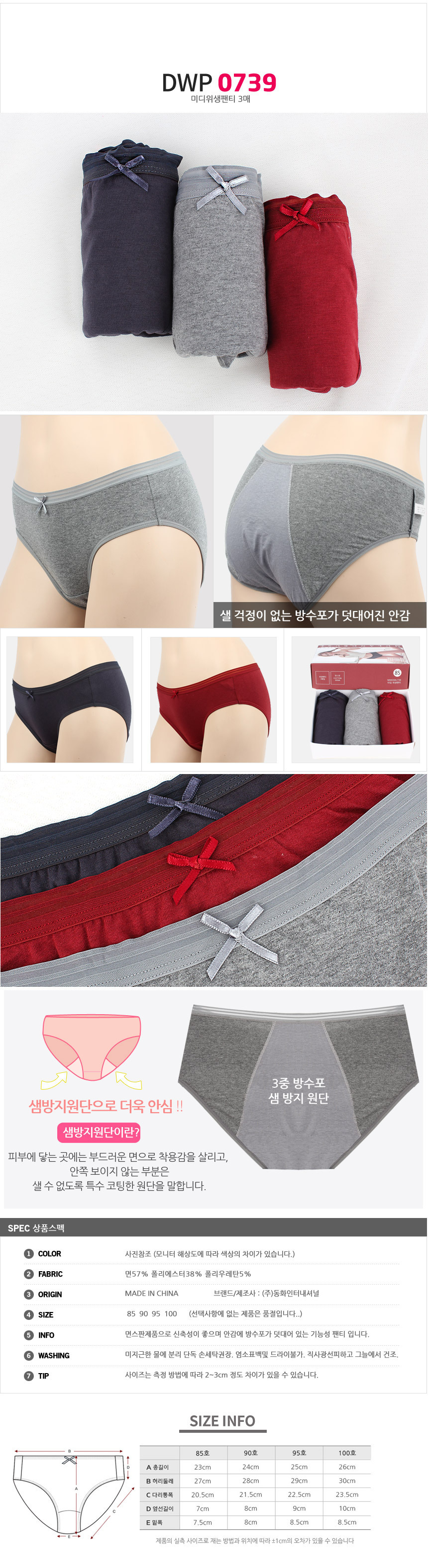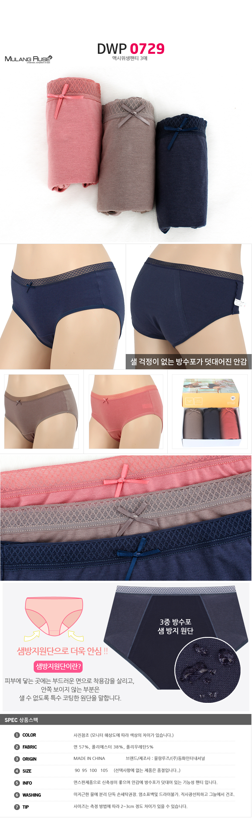 (11+10+4%쿠폰)비비안 외 위생팬티 여성 여자 속옷 주니어 학생 방수포 샘방지 면스판 3매 2매