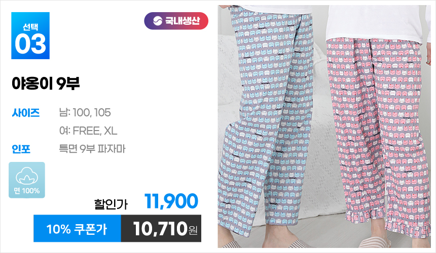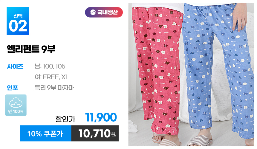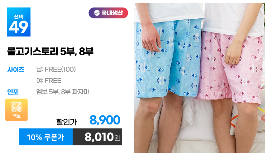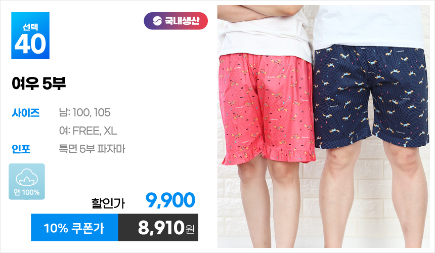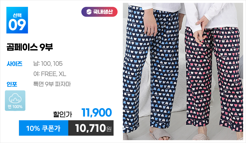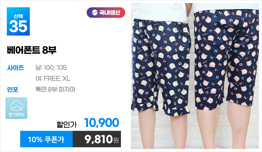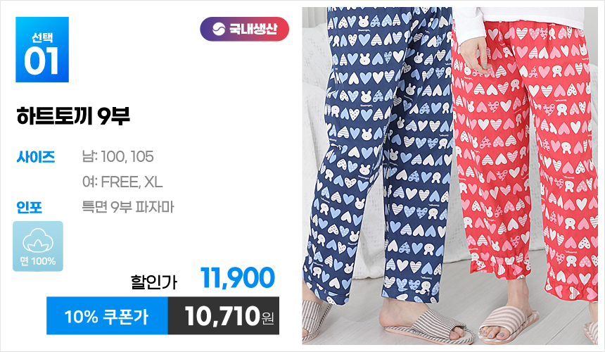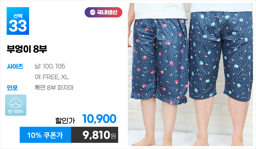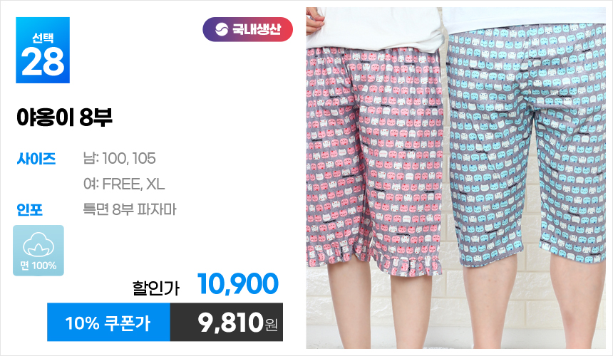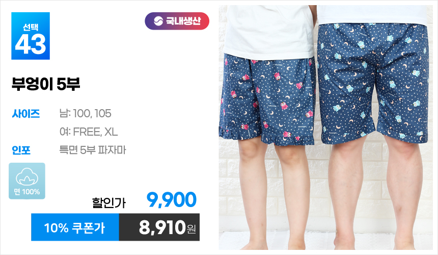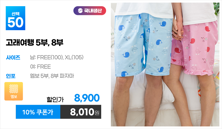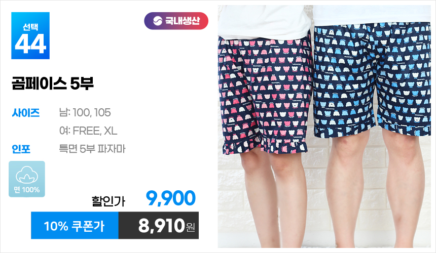 (10%쿠폰)특면 5부 7부 9부 커플 국내산 순면 파자마 남자 여자 홈웨어 잠옷 엠보 수면 바지 반바지