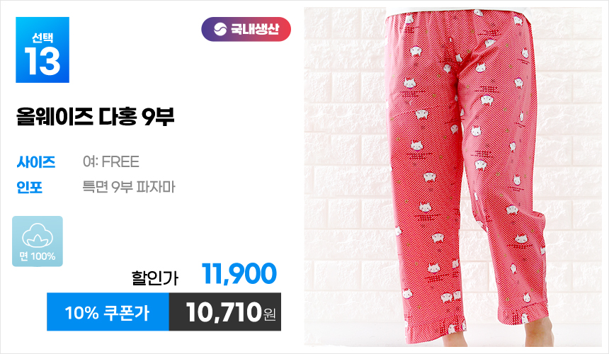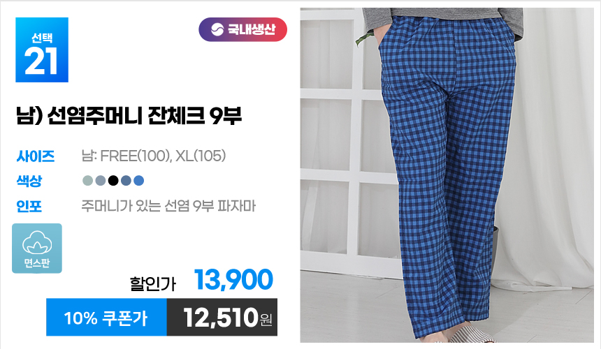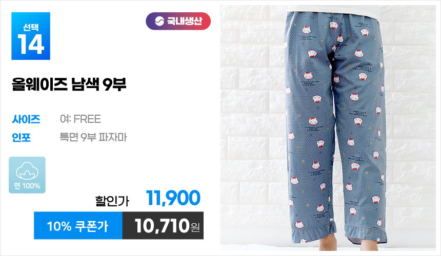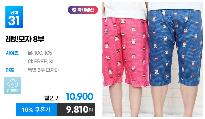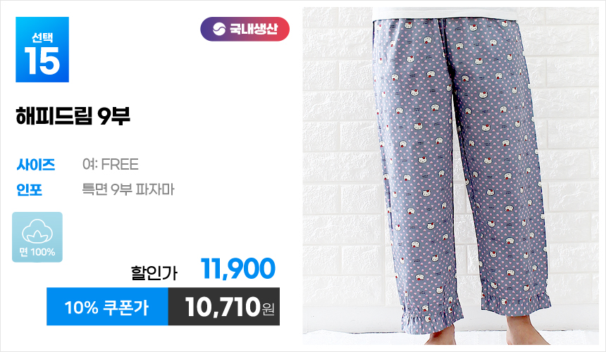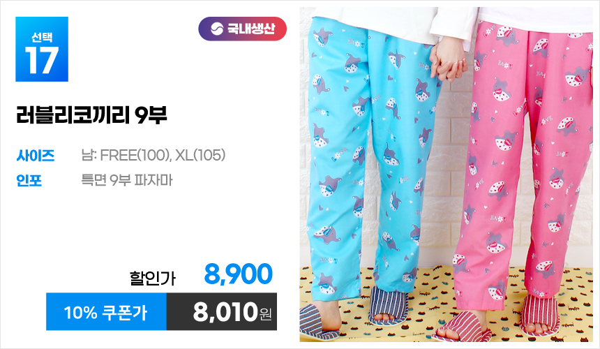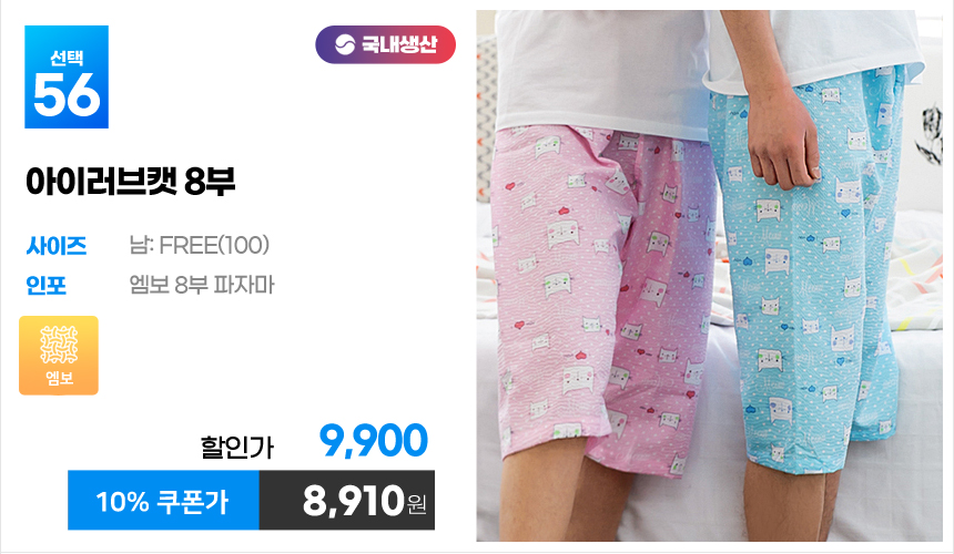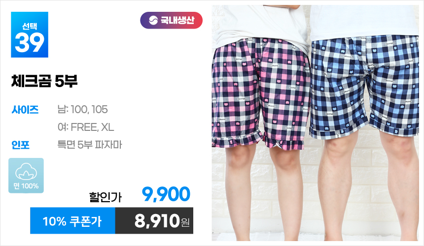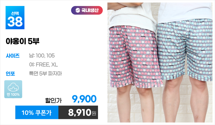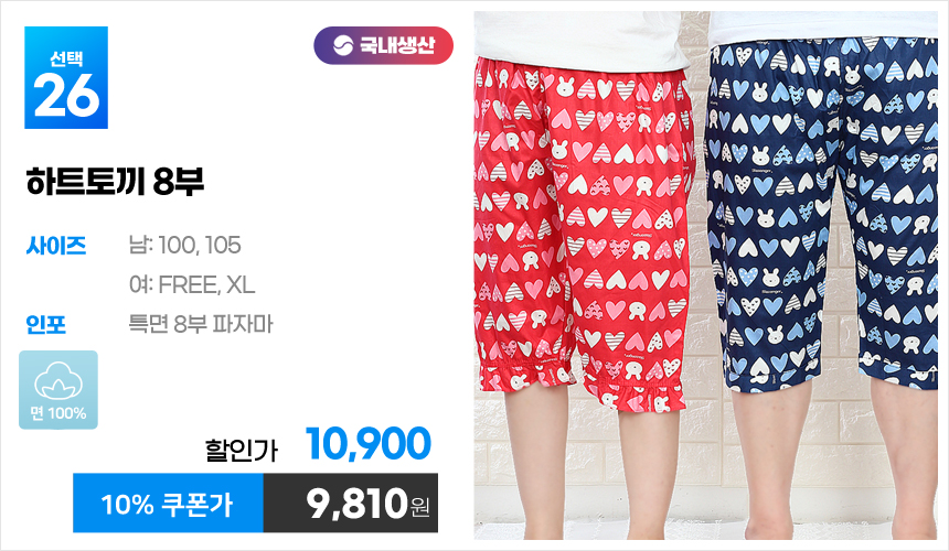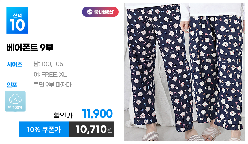 (10%쿠폰)특면 5부 7부 9부 커플 국내산 순면 파자마 남자 여자 홈웨어 잠옷 엠보 수면 바지 반바지
