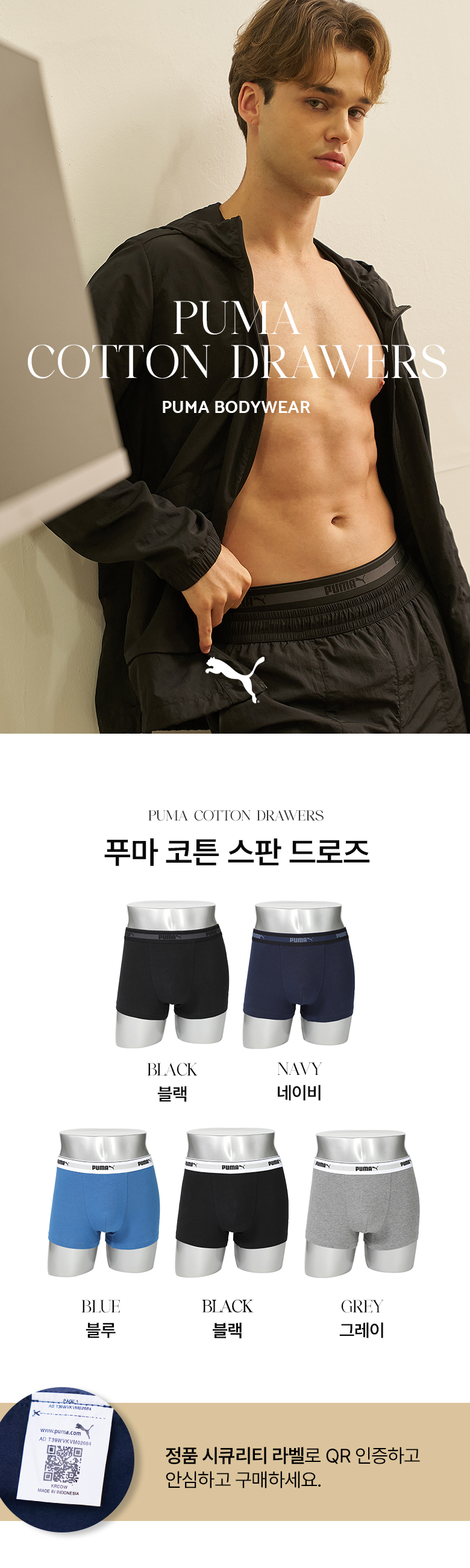 하프클럽/푸마 언더웨어 푸마 면스판 드로즈 5종세트