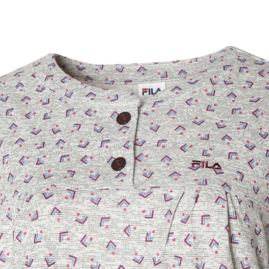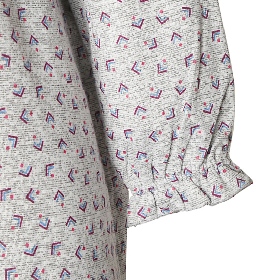 잔잔한 기하학 패턴이 세련된 느낌을 주며, 노카라 라운드넥으 로 편하게 착용 가능합니다.
