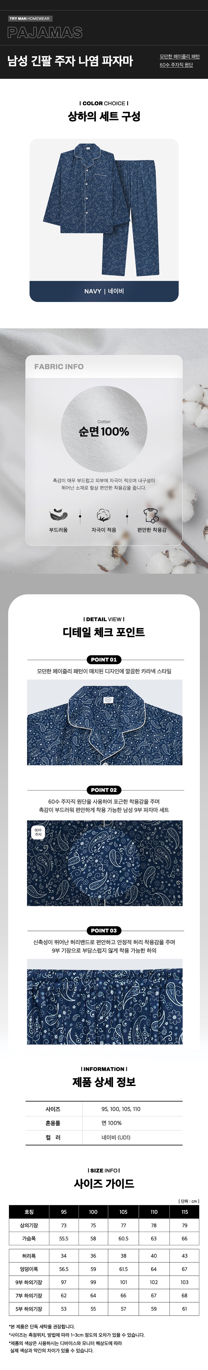 남자면잠옷세트 긴팔 봄 가을 간절기 잠옷 상하세트 60수 카라넥 부모님선물